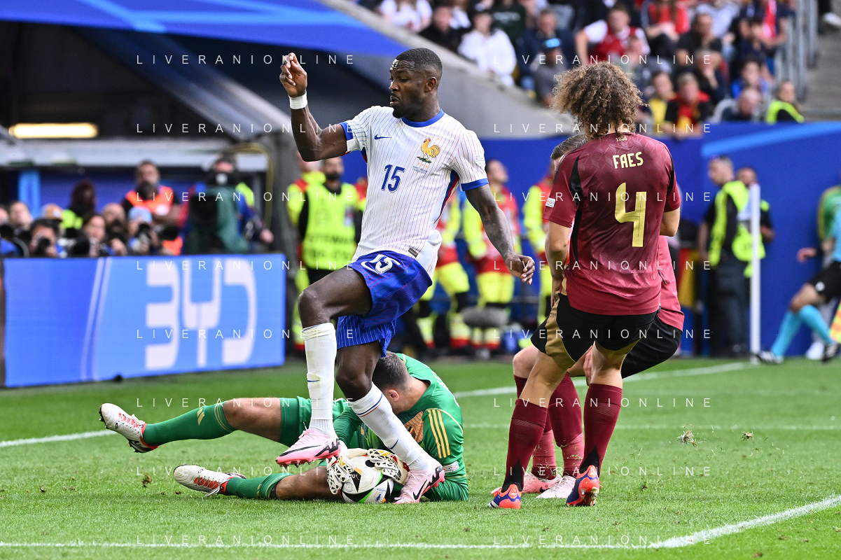 Francia vs Belgio - UEFA EURO 2024 nella foto Koen Casteels (Belgio) anticipa Marcus Thuram (Francia) Dusseldorf (GER) 01-07-2024 Dusseldorf Arena - Merkur Spiel-Arena Campionato Europeo di Calcio - UEFA EURO 2024 ottavi di finale foto Roberto Garavaglia/Agenzia Aldo Liverani sas/ AGENZIA ALDO LIVERANI SAS