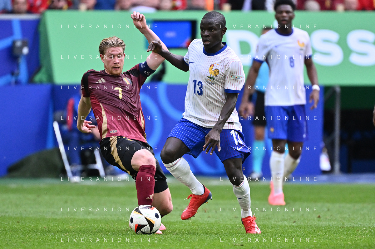 Francia vs Belgio - UEFA EURO 2024 nella foto Kevin De Bruyne (Belgio) e N'Golo Kantè (Francia) Dusseldorf (GER) 01-07-2024 Dusseldorf Arena - Merkur Spiel-Arena Campionato Europeo di Calcio - UEFA EURO 2024 ottavi di finale foto Roberto Garavaglia/Agenzia Aldo Liverani sas/ AGENZIA ALDO LIVERANI SAS