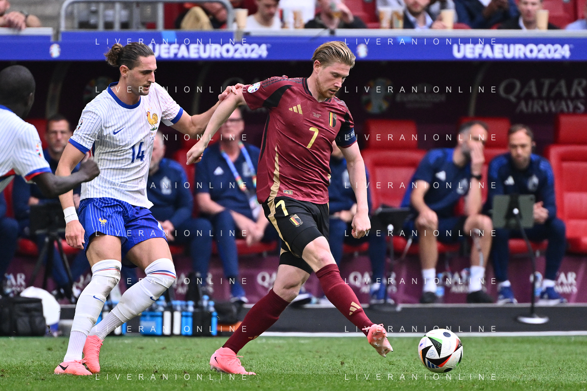 Francia vs Belgio - UEFA EURO 2024 nella foto Adrien Rabiot (Francia) e Kevin De Bruyne (Belgio) Dusseldorf (GER) 01-07-2024 Dusseldorf Arena - Merkur Spiel-Arena Campionato Europeo di Calcio - UEFA EURO 2024 ottavi di finale foto Roberto Garavaglia/Agenzia Aldo Liverani sas/ AGENZIA ALDO LIVERANI SAS