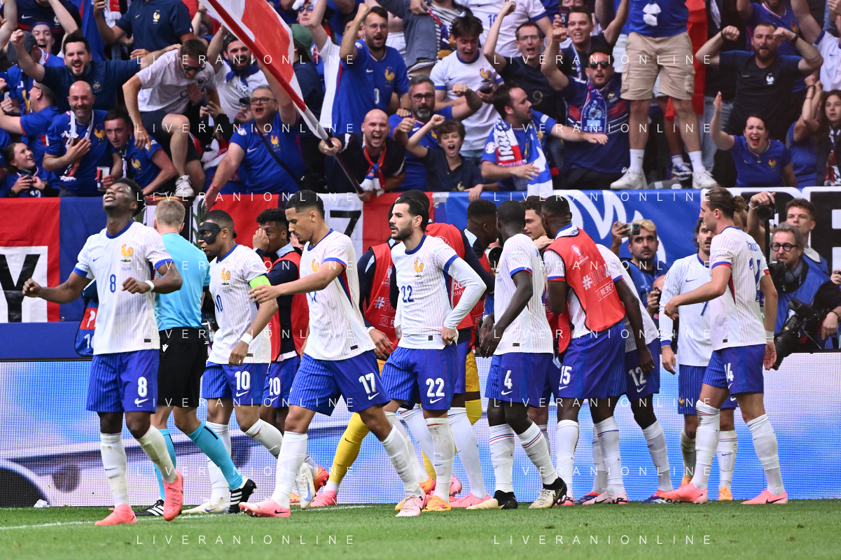 Francia vs Belgio - UEFA EURO 2024 nella foto esultanza Francia dopo il gol dell'1 a 0 Dusseldorf (GER) 01-07-2024 Dusseldorf Arena - Merkur Spiel-Arena Campionato Europeo di Calcio - UEFA EURO 2024 ottavi di finale foto Roberto Garavaglia/Agenzia Aldo Liverani sas/ AGENZIA ALDO LIVERANI SAS