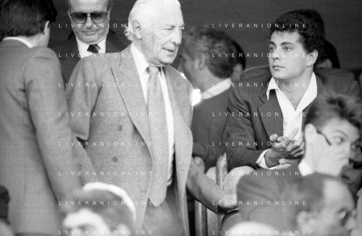 Neg- RETROSPETTIVA GIOVANNI (GIANNI) AGNELLI IMPRENDITORE NELLA FOTO IN TRIBUNA ALLO STADIO NELL'ANNO 1990 CON IL NIPOTE GIOVANNI ALBERTO (GIOVANNINO) AG ALDO LIVERANI SAS