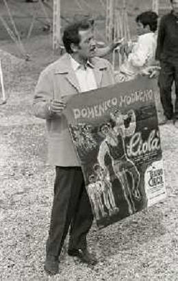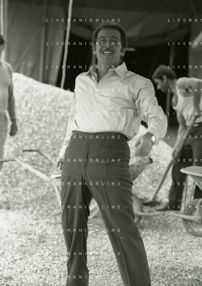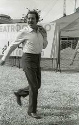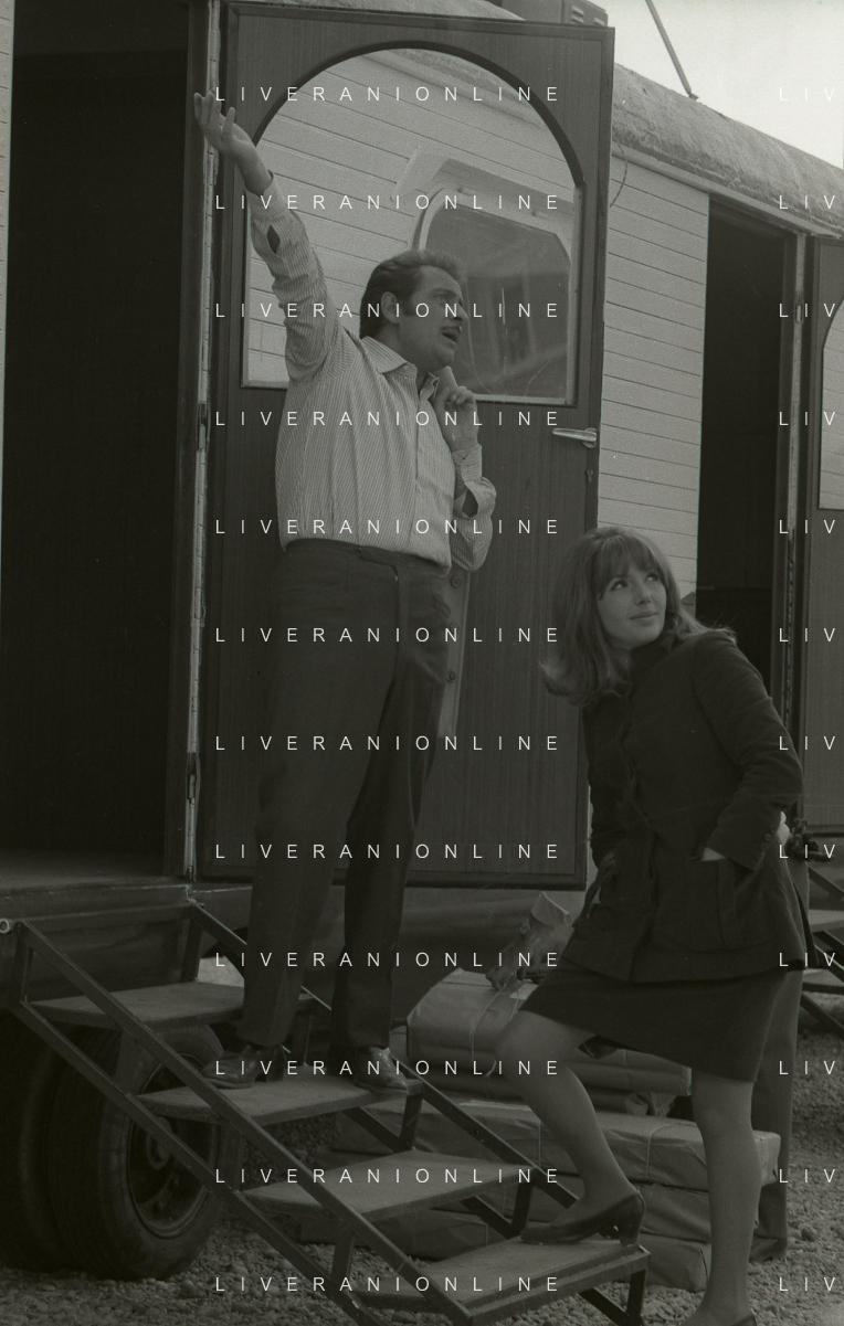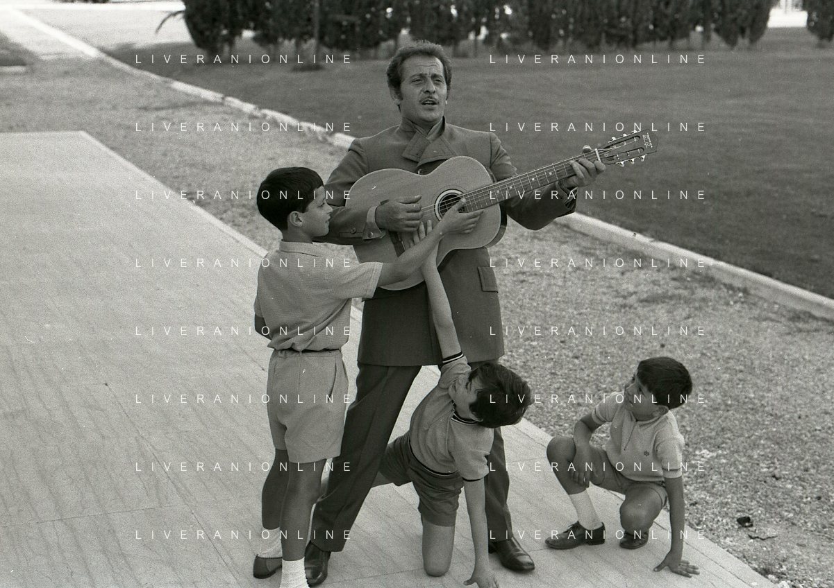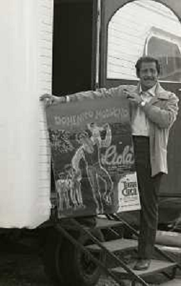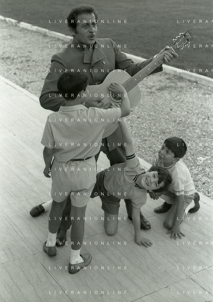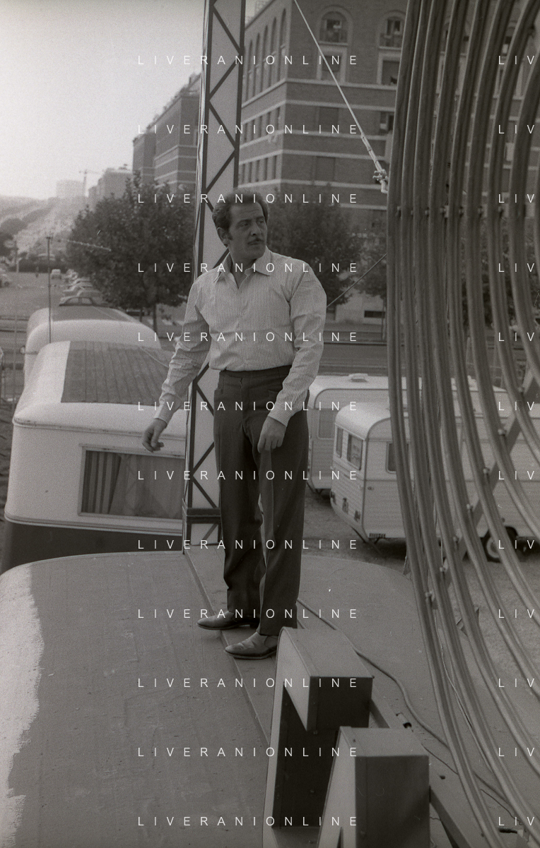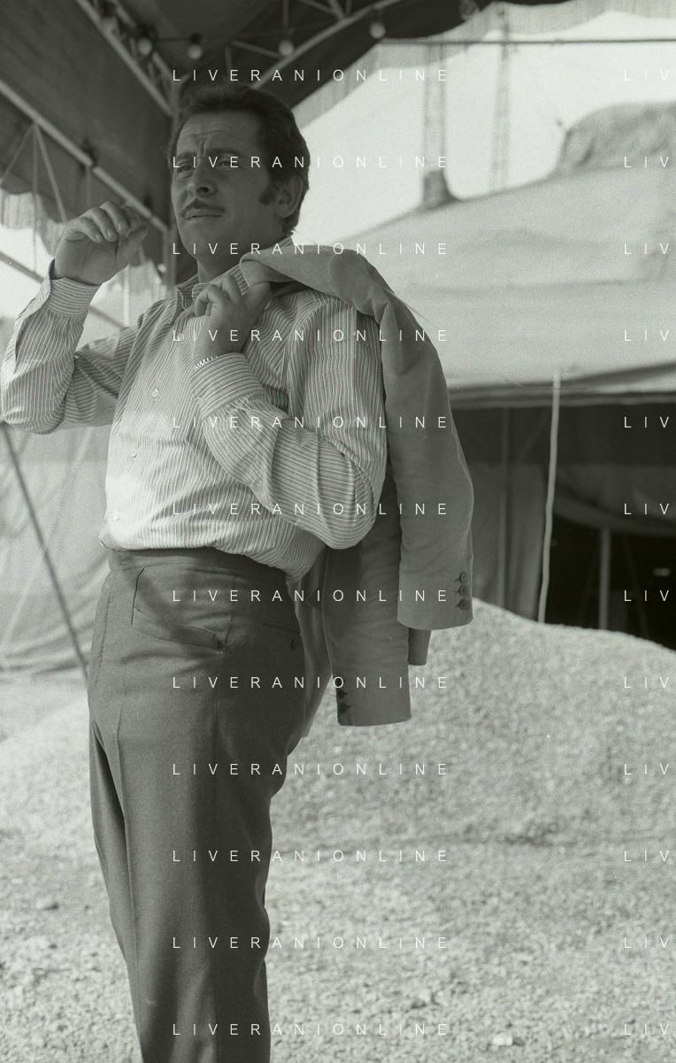NEG-RETROSPETTIVA DOMENICO MODUGNO CANTANTE NELLA FOTO DOMENICO MODUGNO NEL 1968 E IL SUO CIRCO TEATRO AG ALDO LIVERANI SAS