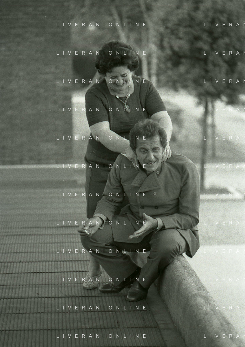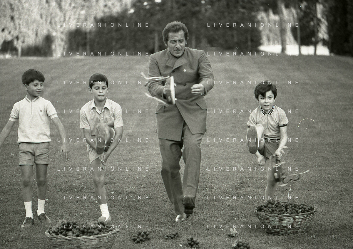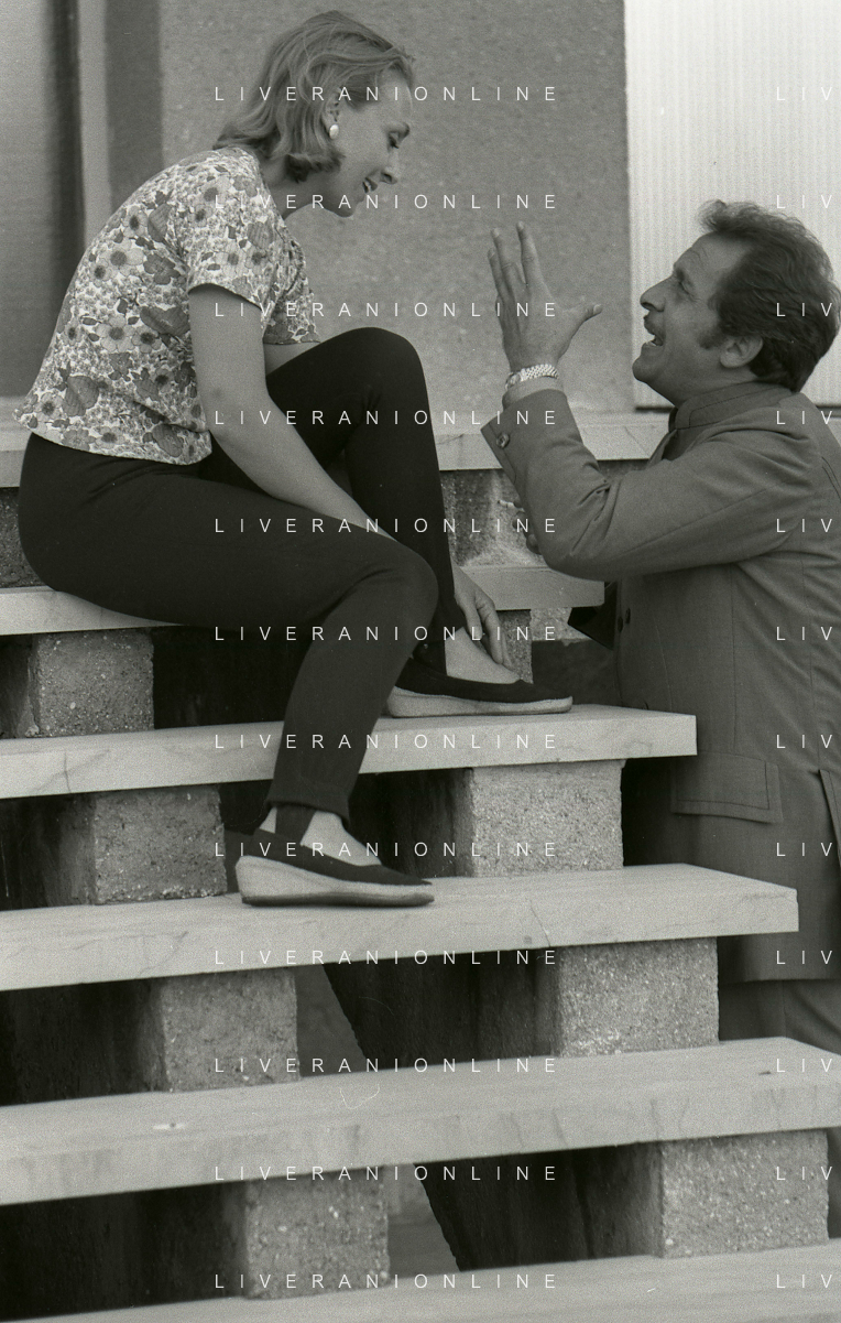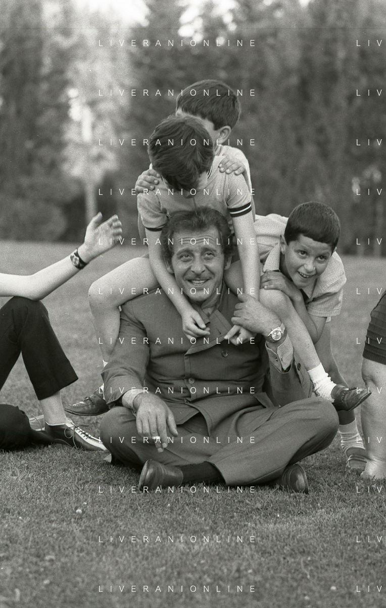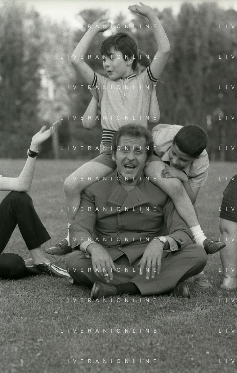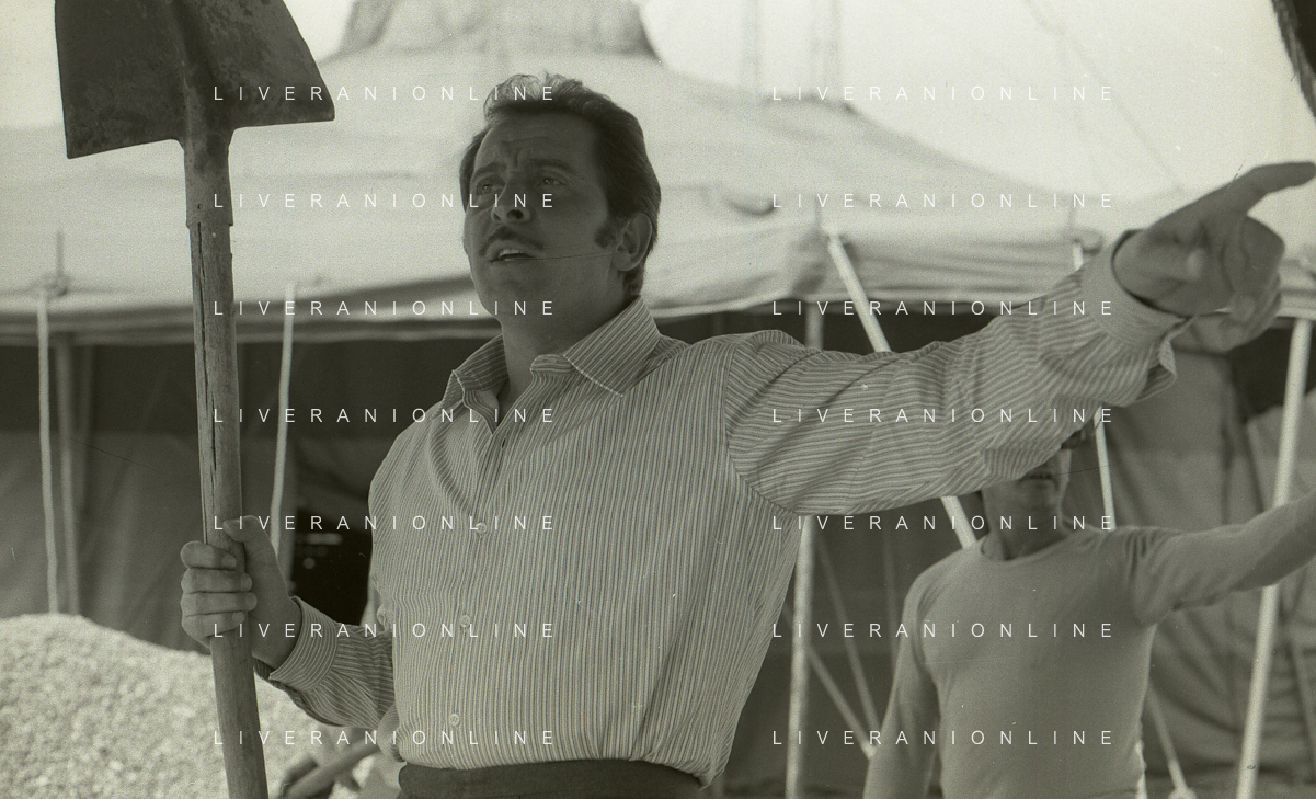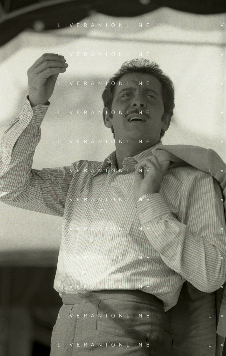 NEG-RETROSPETTIVA DOMENICO MODUGNO CANTANTE NELLA FOTO DOMENICO MODUGNO NEL 1968 E IL SUO CIRCO TEATRO AG ALDO LIVERANI SAS