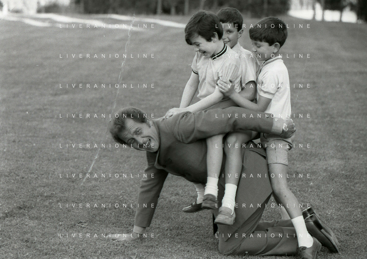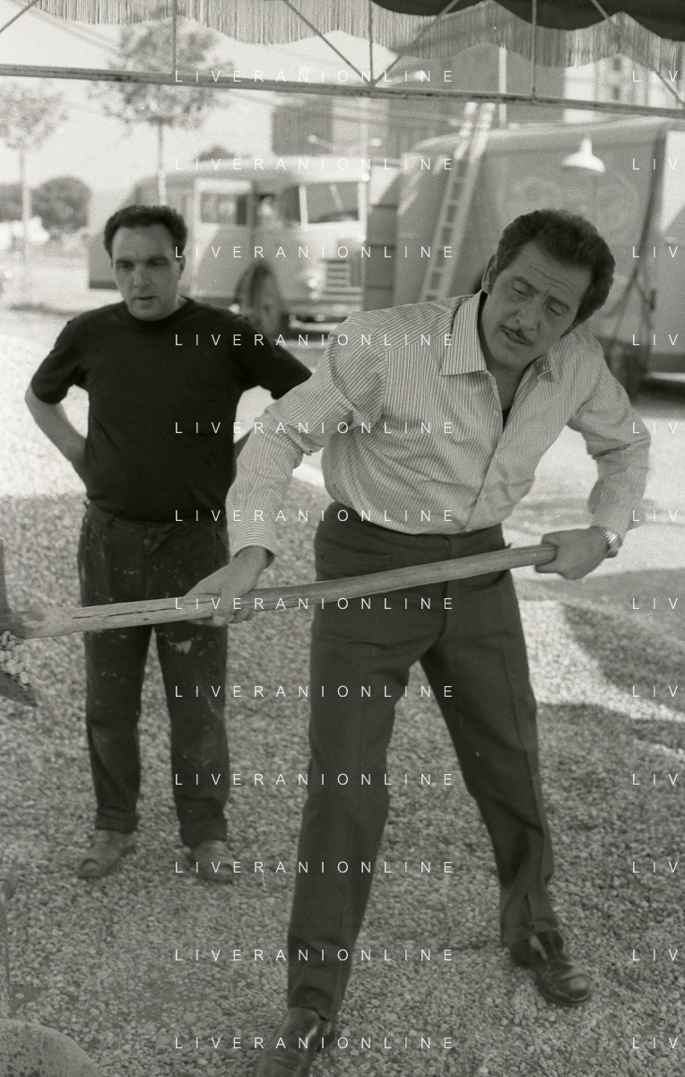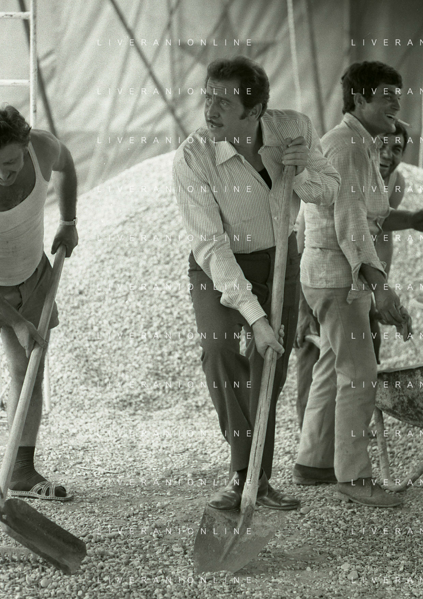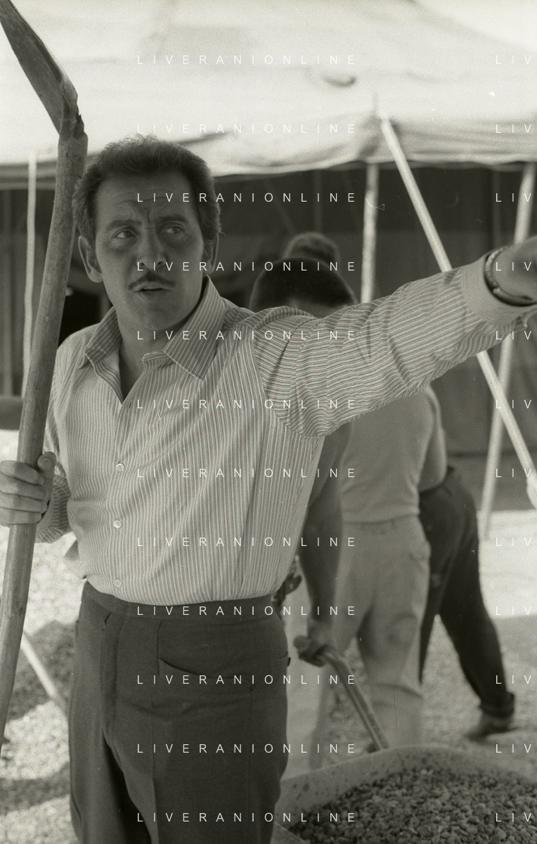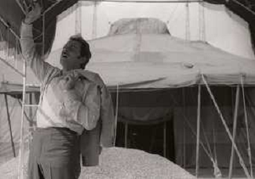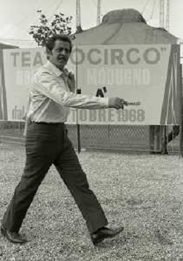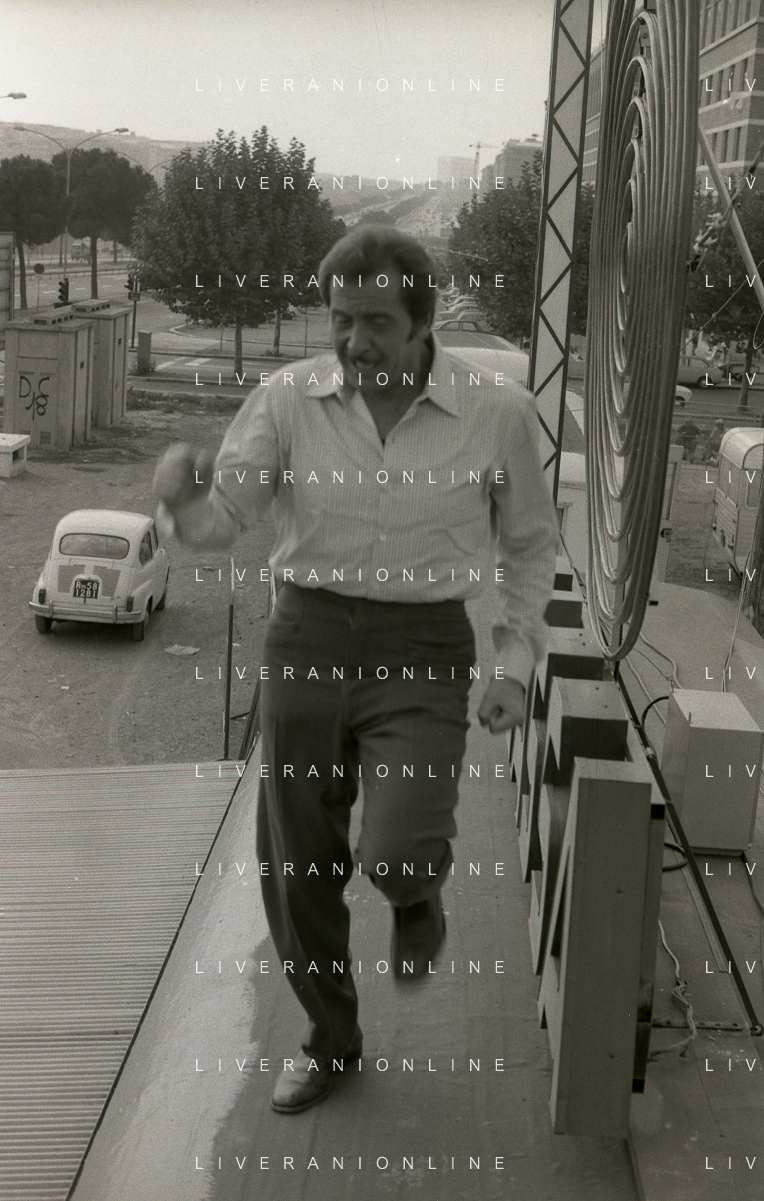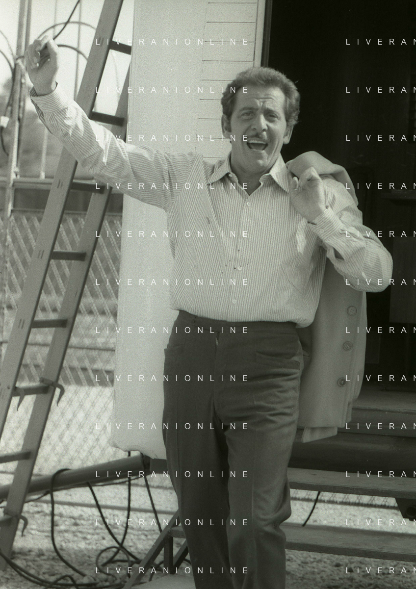 NEG-RETROSPETTIVA DOMENICO MODUGNO CANTANTE NELLA FOTO DOMENICO MODUGNO NEL 1968 E IL SUO CIRCO TEATRO AG ALDO LIVERANI SAS