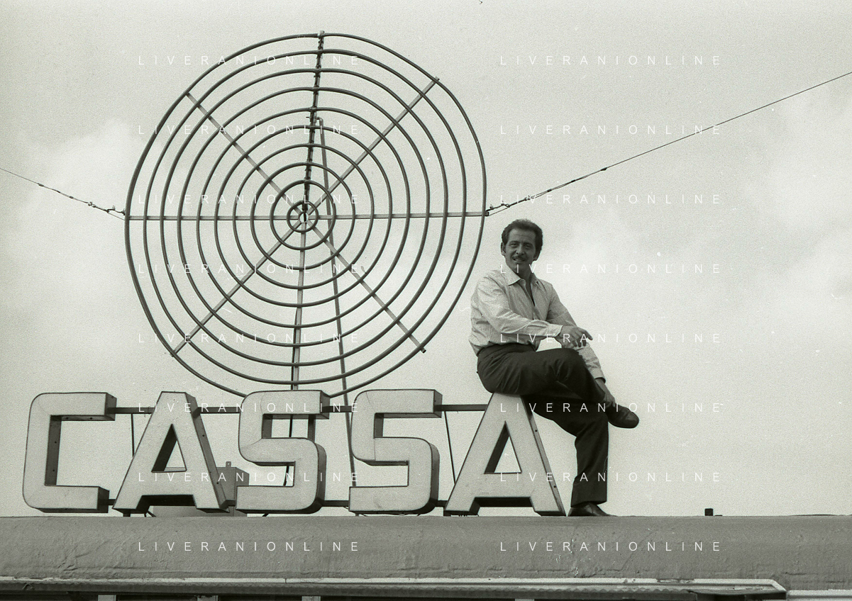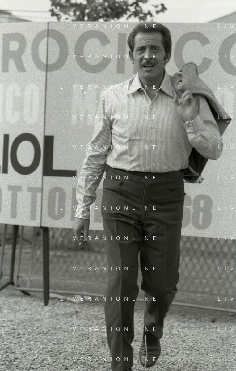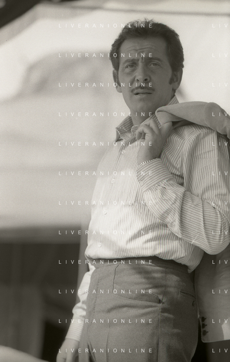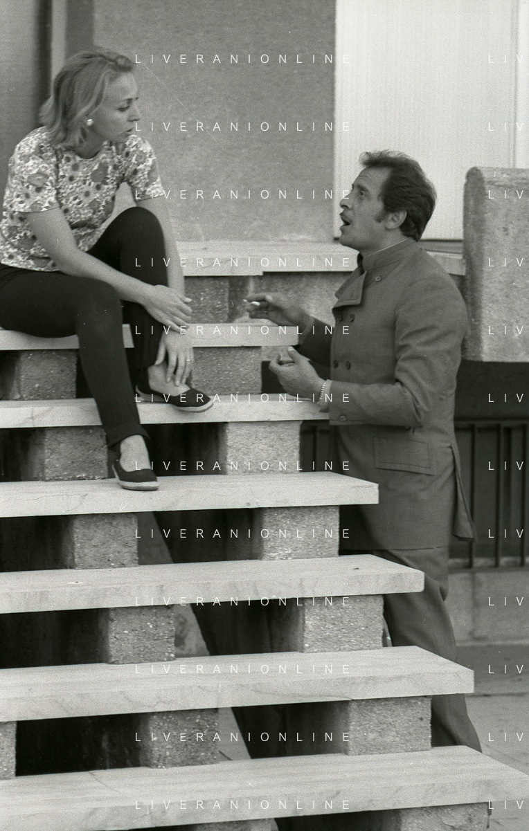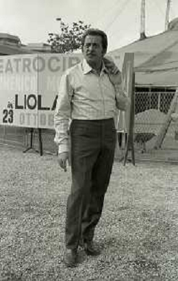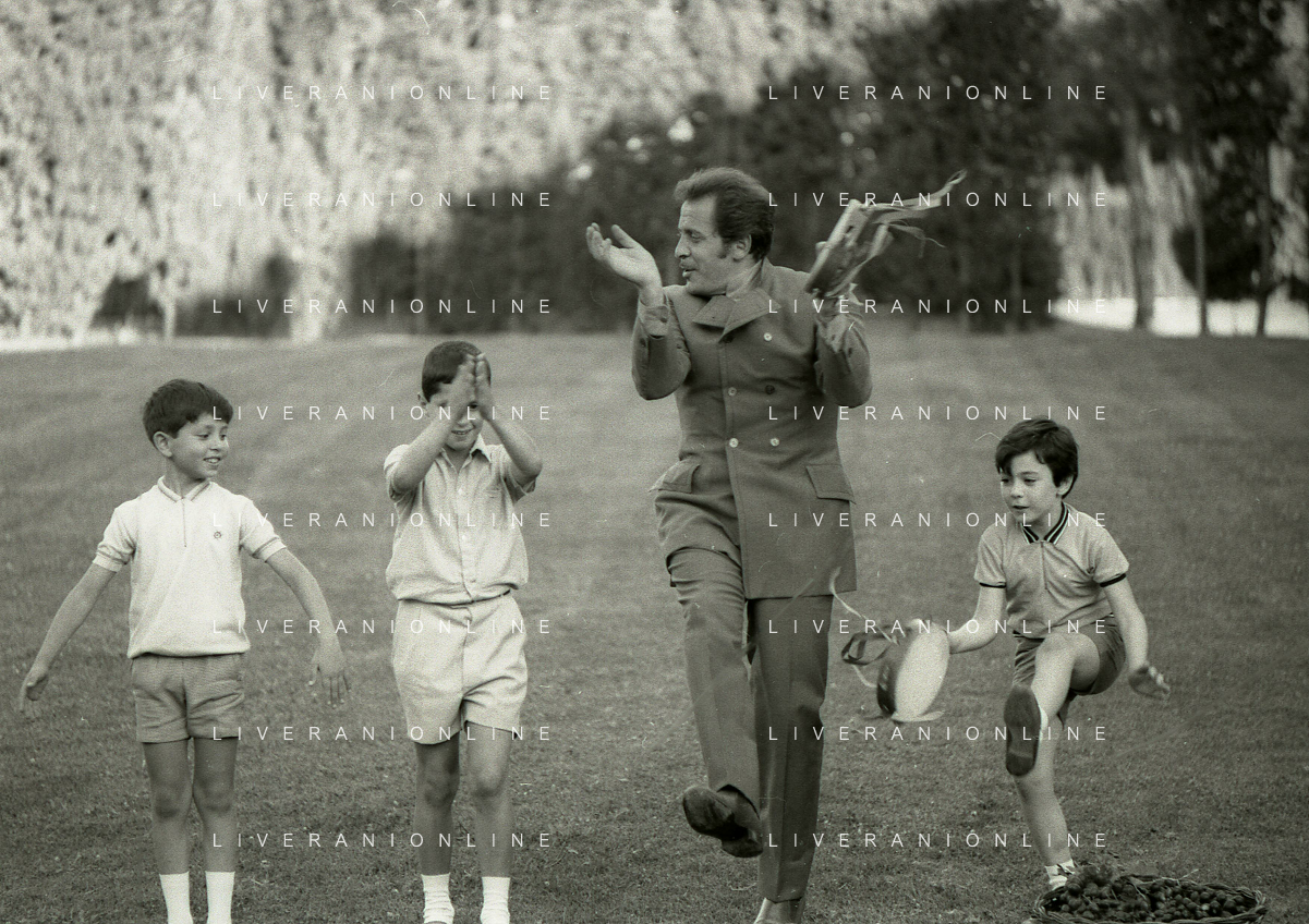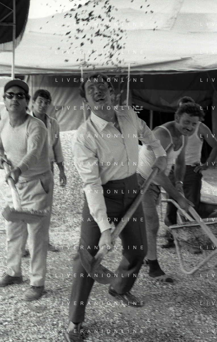 NEG-RETROSPETTIVA DOMENICO MODUGNO CANTANTE NELLA FOTO DOMENICO MODUGNO NEL 1968 E IL SUO CIRCO TEATRO AG ALDO LIVERANI SAS