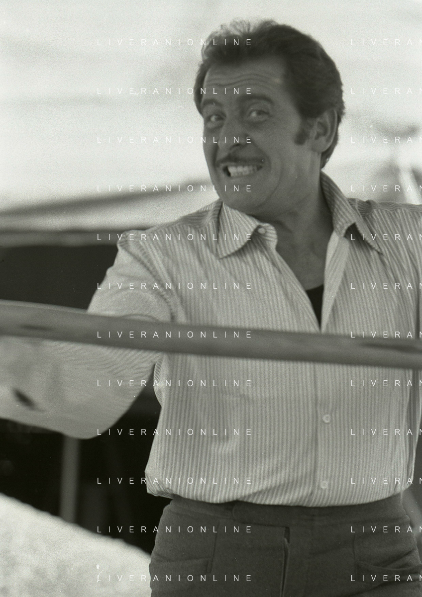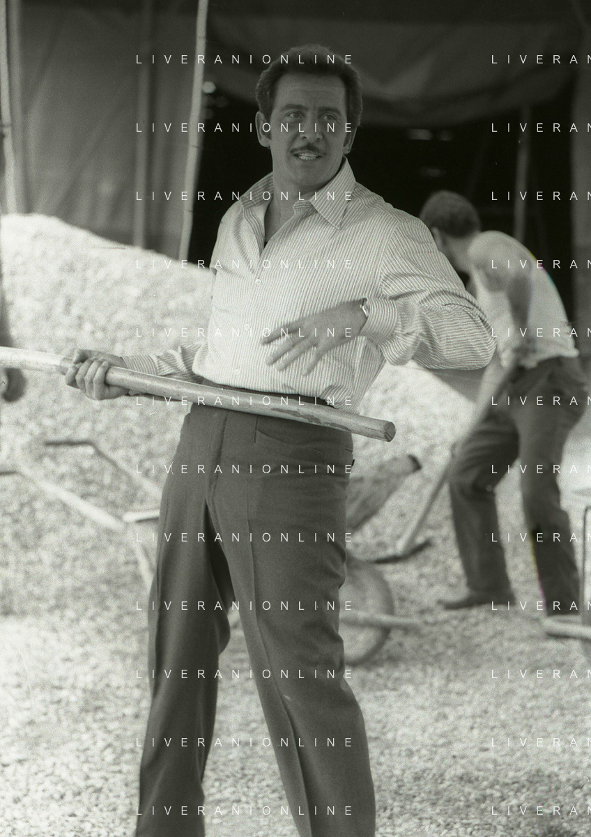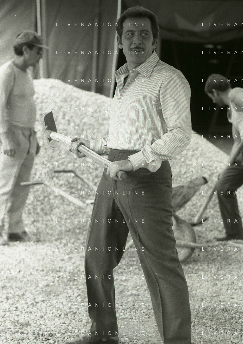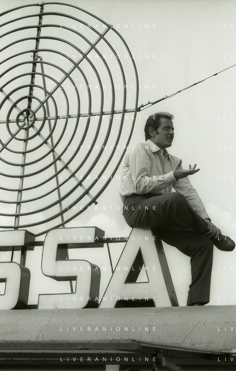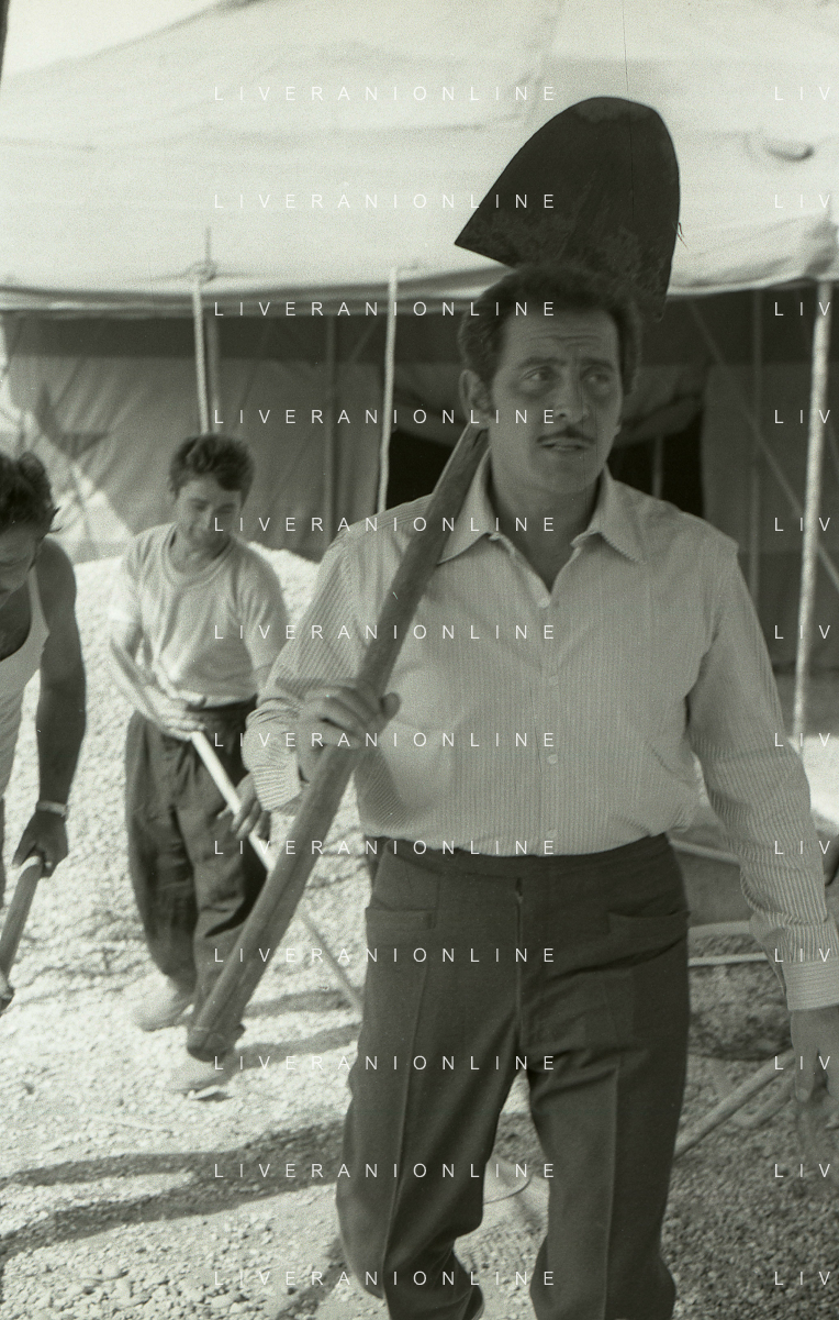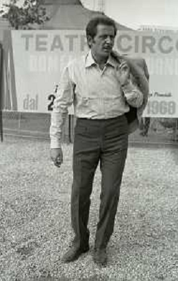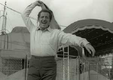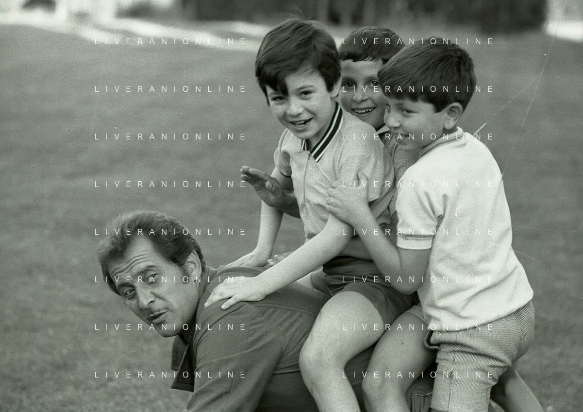 NEG-RETROSPETTIVA DOMENICO MODUGNO CANTANTE NELLA FOTO DOMENICO MODUGNO NEL 1968 E IL SUO CIRCO TEATRO AG ALDO LIVERANI SAS