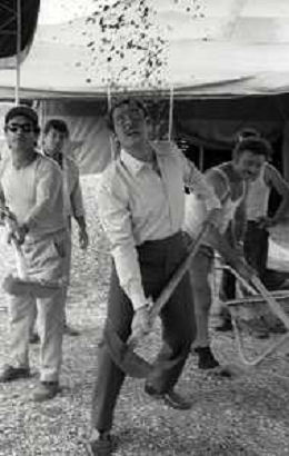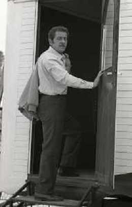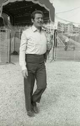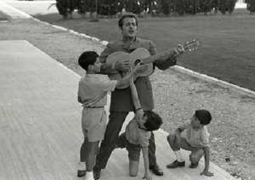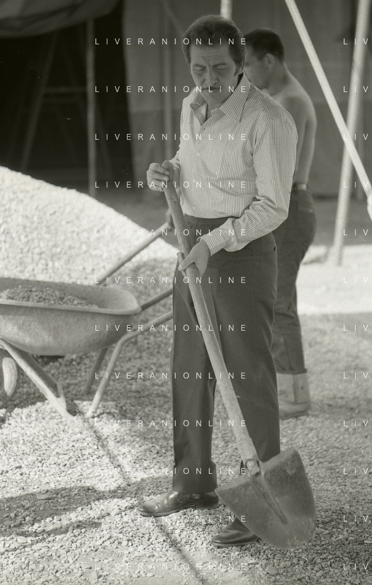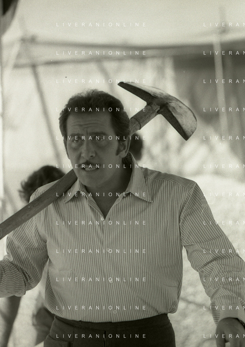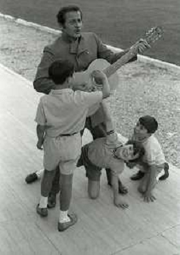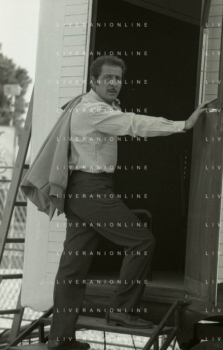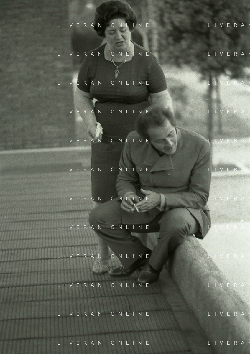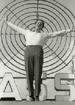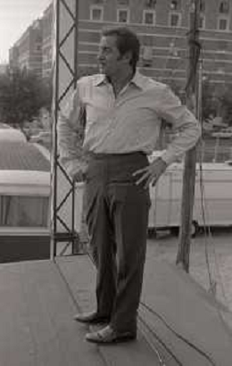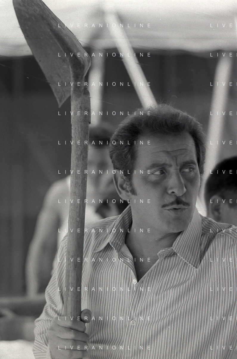 NEG-RETROSPETTIVA DOMENICO MODUGNO CANTANTE NELLA FOTO DOMENICO MODUGNO NEL 1968 E IL SUO CIRCO TEATRO AG ALDO LIVERANI SAS
