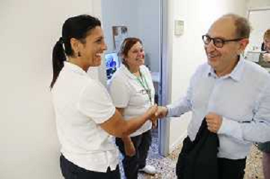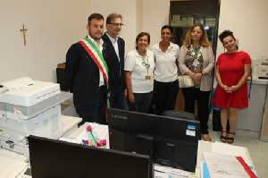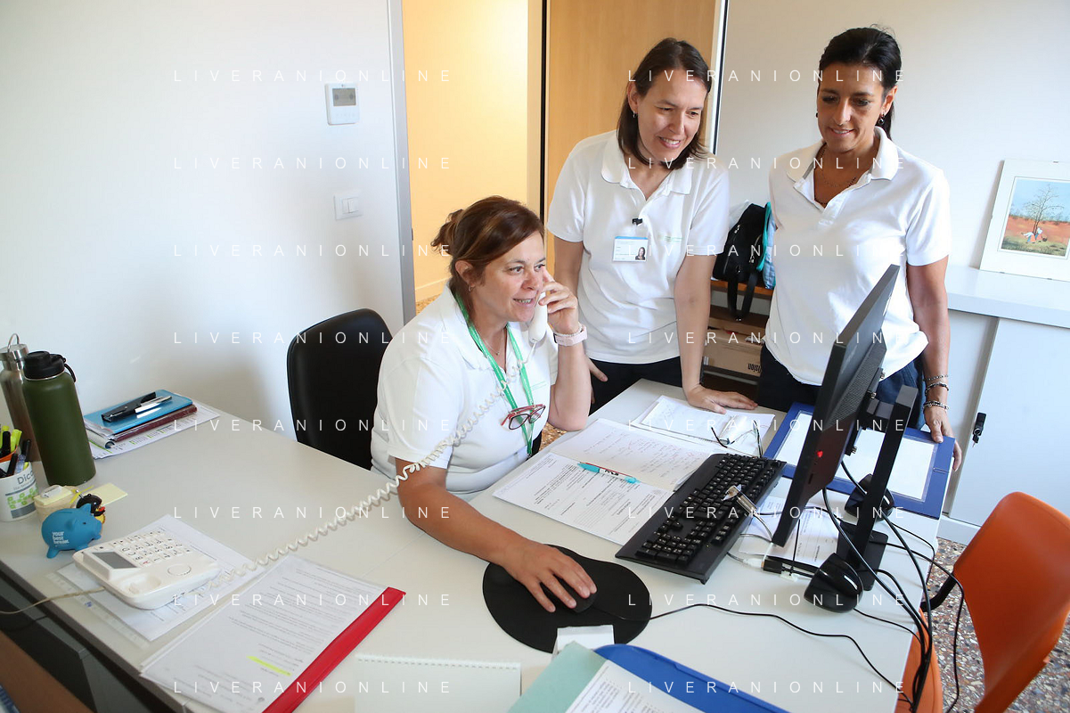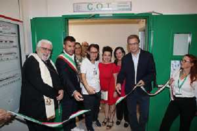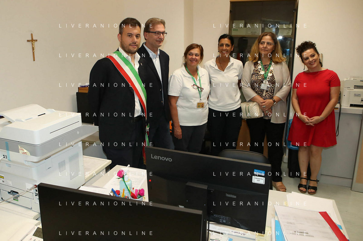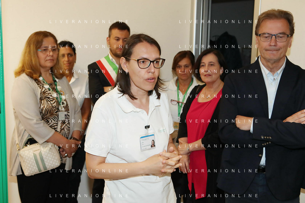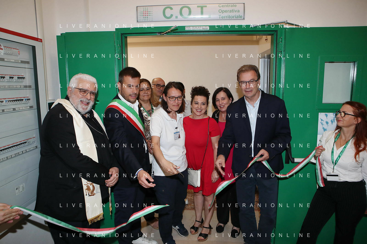 IMOLA 06 07 2024 AUSLI IMOLA inaugurazione Centrale Operativa Territoriale (C.O.T.) NELLA FOTO TAGLIO DEL NASTRO CON LA PRESENZA DI Marco Panieri, Presidente Nuovo Circondario Imolese e Sindaco di Imola Andrea Rossi, Direttore Generale Ausl Imola Sabrina Gabrielli, Direttrice Assistenziale Ausl Imola Cristina Bortolotti, Coordinatrice infermieristica territoriale Ausl Imola Susi Lamieri, ASP Circondario Imolese S.E. Monsignor Giovanni Mosciatti, Vescovo di Imola E LIANA LELLI UNA OPRATRICE ©SANNA / AGENZIA ALDO LIVERANI SAS