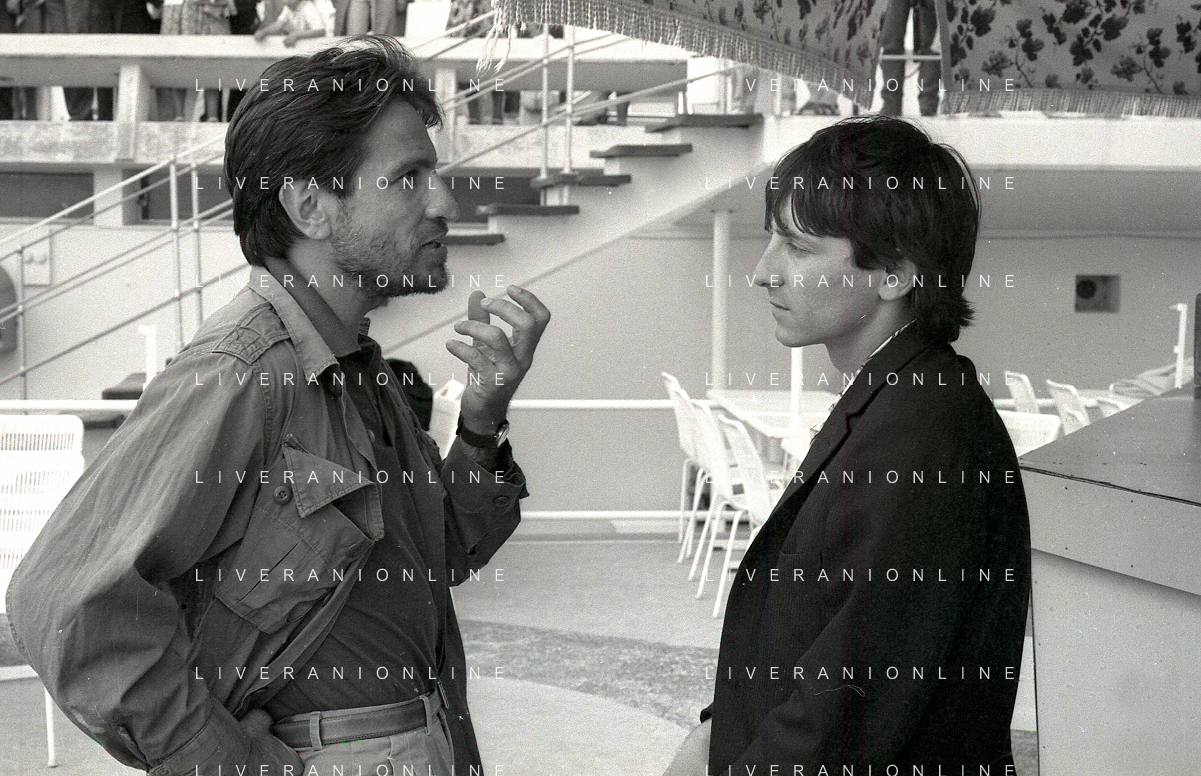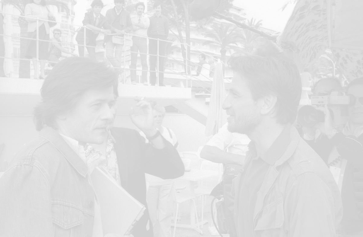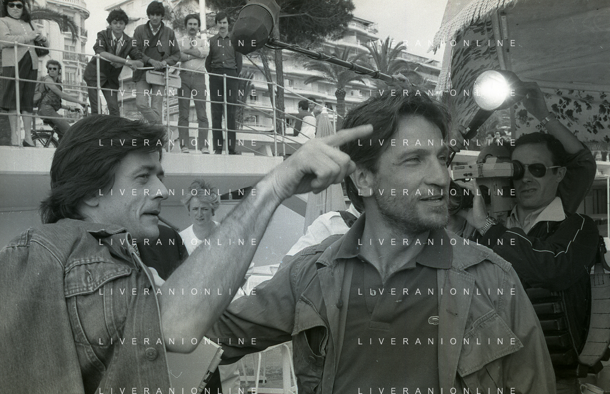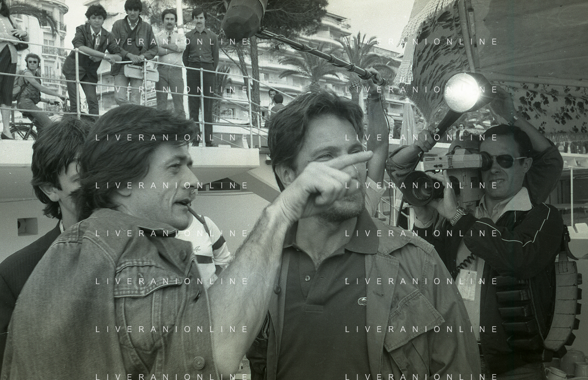 NEG-RETROSPETTIVA VITTORIO MEZZOGIORNO ATTORE NELLA FOTO VITTORIO MEZZOGIORNO CON JEAN HUGUES ANGLADE E PATRICE CHEREAU A CANNES NELL'ANNO 1983 AG ALDO LIVERANI SAS