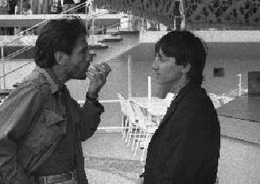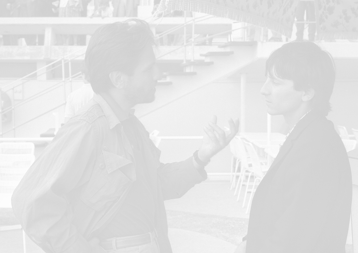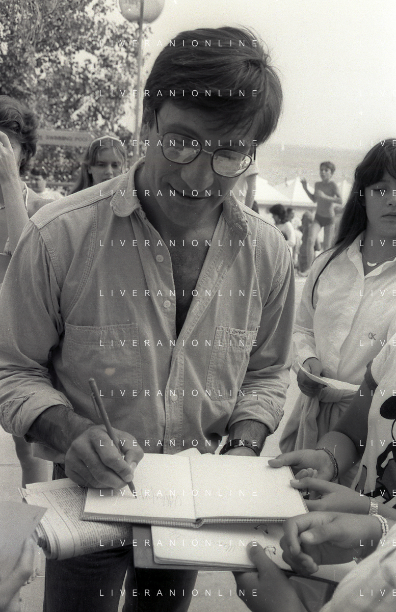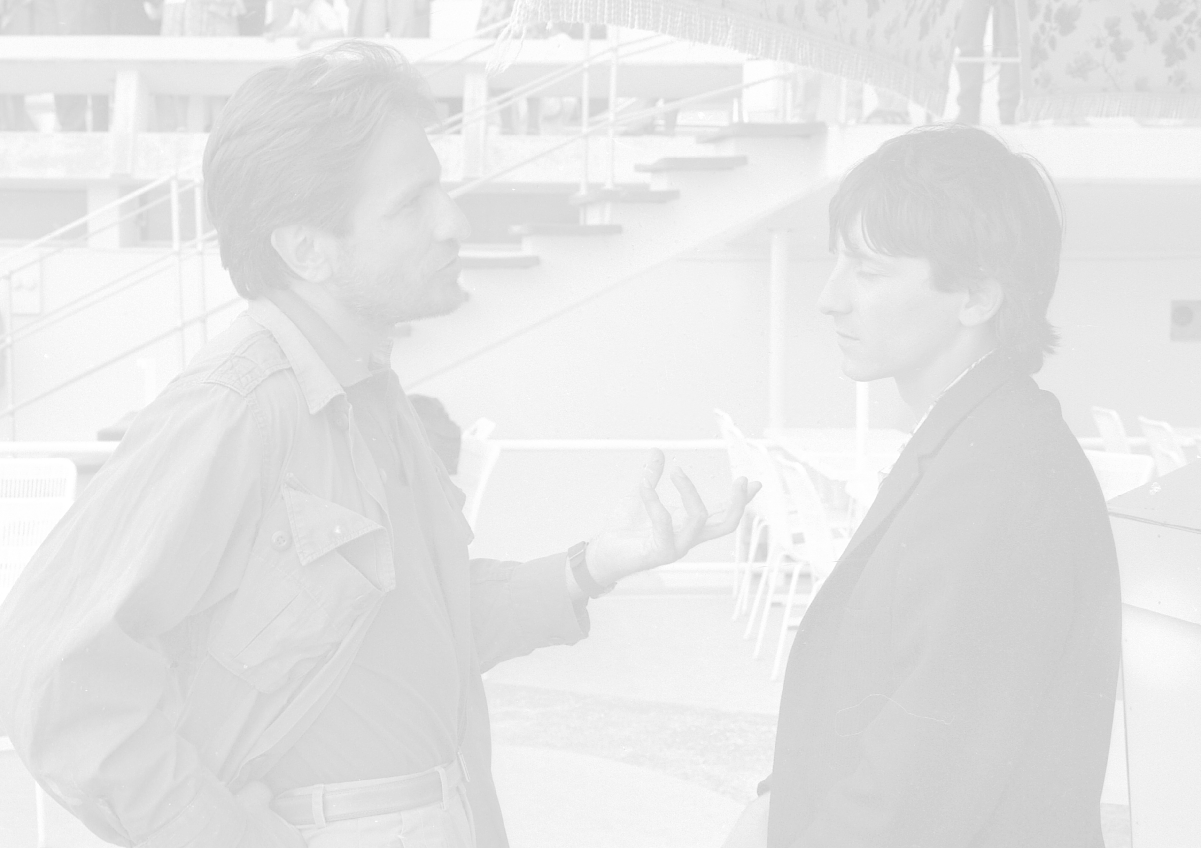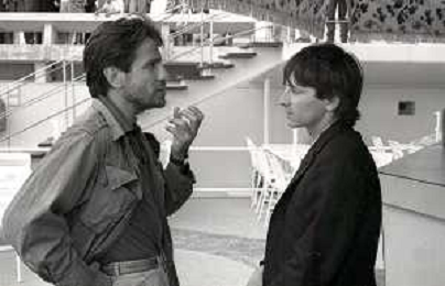 NEG-RETROSPETTIVA VITTORIO MEZZOGIORNO ATTORE NELLA FOTO VITTORIO MEZZOGIORNO CON JEAN HUGUES ANGLADE E PATRICE CHEREAU A CANNES NELL'ANNO 1983 AG ALDO LIVERANI SAS