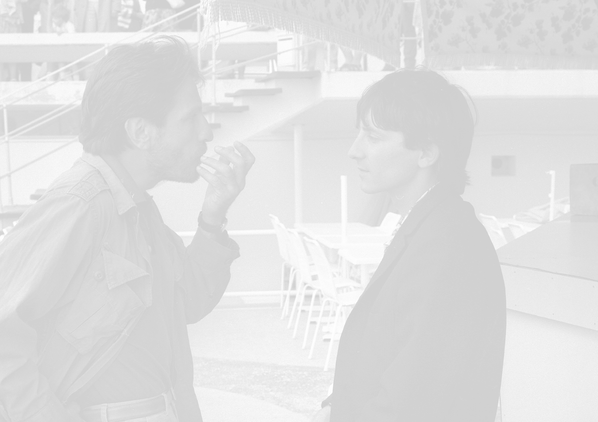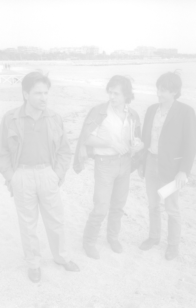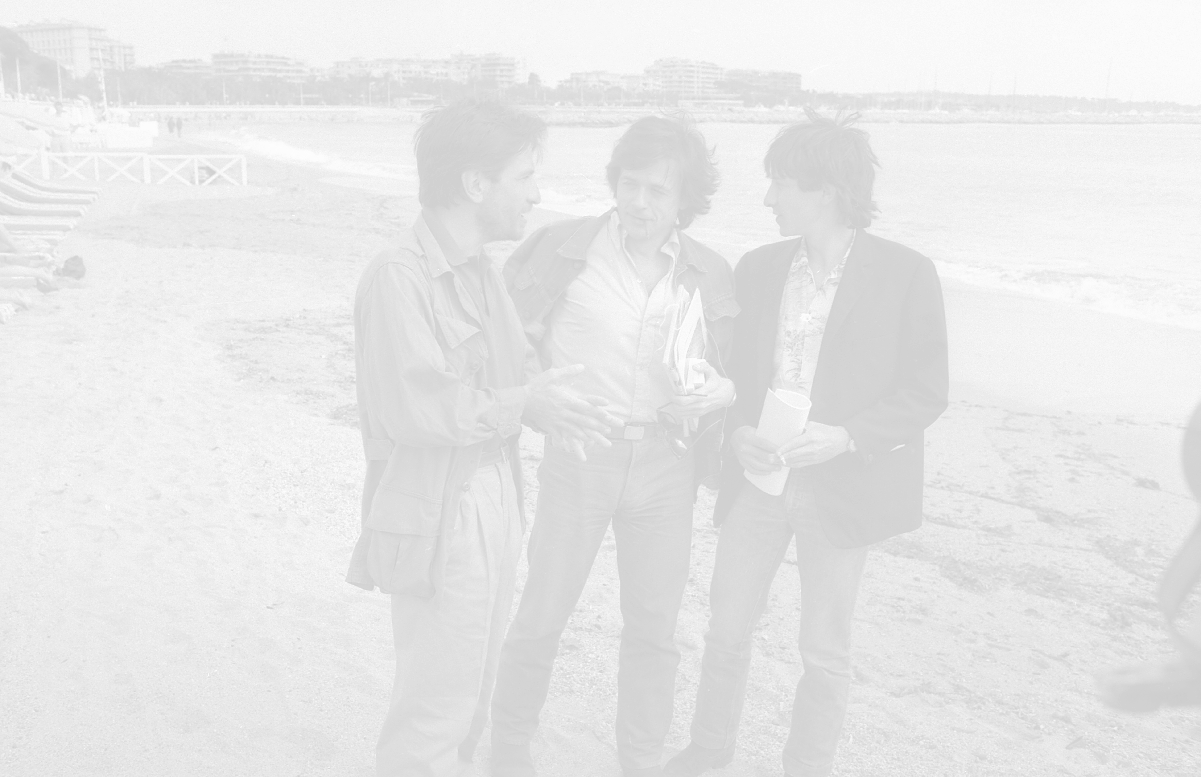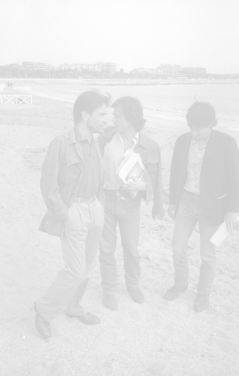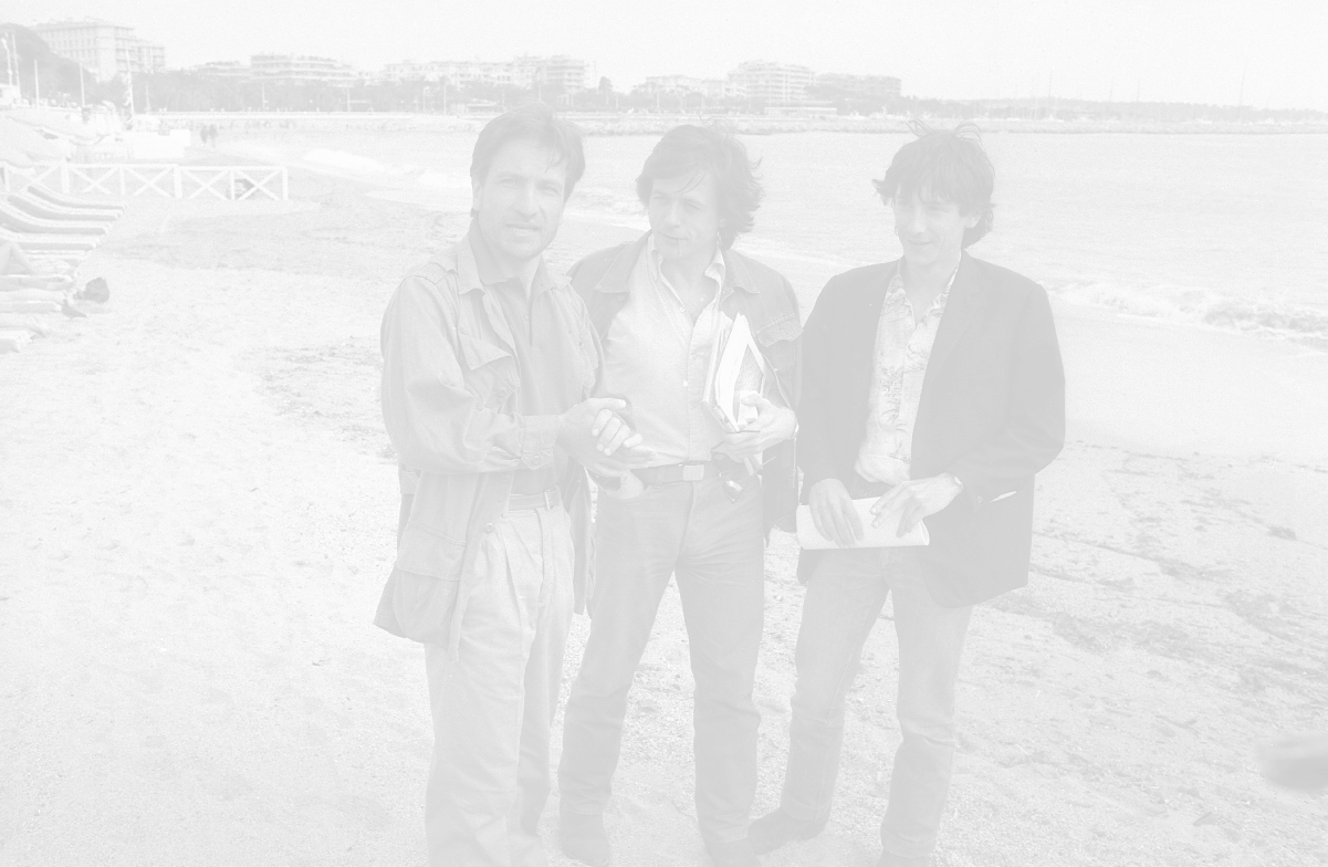 NEG-RETROSPETTIVA VITTORIO MEZZOGIORNO ATTORE NELLA FOTO VITTORIO MEZZOGIORNO CON JEAN HUGUES ANGLADE E PATRICE CHEREAU A CANNES NELL'ANNO 1983 AG ALDO LIVERANI SAS S