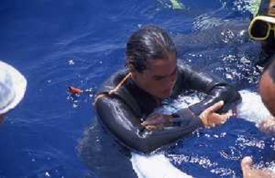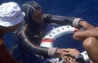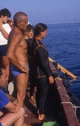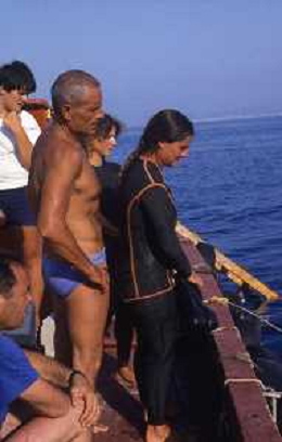DIAP-RETROSPETTIVA Enzo Maiorca, all'anagrafe Vincenzo Maiorca, è stato un apneista italiano, più volte detentore del record mondiale di immersione in apnea NELLA FOTO ENZO MAIORCA CON LA FIGLIA ROSANNA AG ALDO LIVERANI SAS