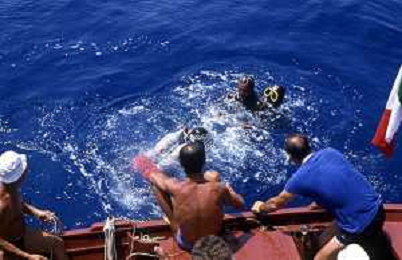 DIAP- RETROSPETTIVA ROSSANA MAIORCA APNEISTA NELLA FOTO ROSSANA MAIORCA CON IL PADRE ENZO MAIORCA AG ALDO LIVERANI SAS