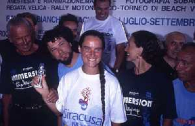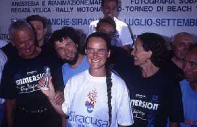 DIAP- RETROSPETTIVA ROSSANA MAIORCA APNEISTA NELLA FOTO ROSSANA MAIORCA NELL'ANNO 1991 CON LA FAMIGLIA AG ALDO LIVERANI SAS