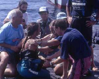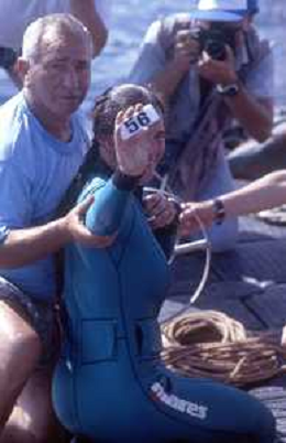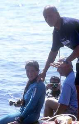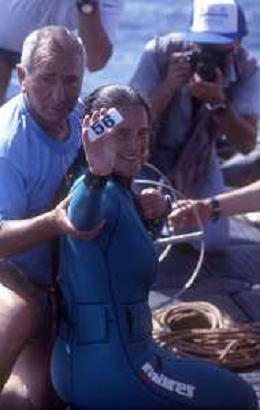 DIAP- RETROSPETTIVA ROSSANA MAIORCA APNEISTA NELLA FOTO ROSSANA MAIORCA NELL'ANNO 1991 CON IL PADRE ENZO MAIORCA AG ALDO LIVERANI SAS