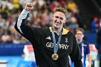 Olimpiadi Parigi 2024 - nuoto Nuoto finale 400 m stile libero maschile nella foto Lukas Maertens (GER) vince la medaglia d'oro Parigi 27-07-2024 Arena Parigi La Defense foto Roberto Garavaglia/Agenzia Aldo Liverani sas