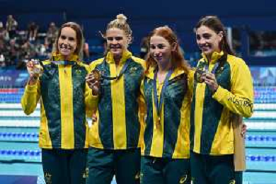Olimpiadi Parigi 2024 - nuoto Nuoto finale 4x100m stile libero femminile nella foto Australia con la medaglia d'oro Parigi 27-07-2024 Arena Parigi La Defense foto Roberto Garavaglia/Agenzia Aldo Liverani sas