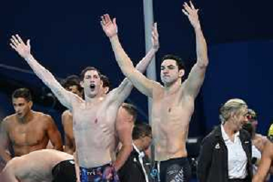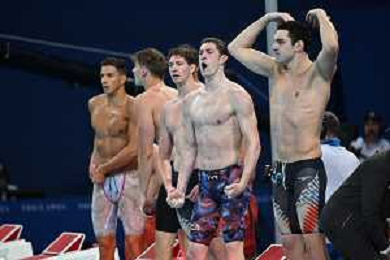 Olimpiadi Parigi 2024 - nuoto Nuoto finale 4x100m stile libero maschile nella foto esultanza Stati Uniti e sulla SX delusione Italia Parigi 27-07-2024 Arena Parigi La Defense foto Roberto Garavaglia/Agenzia Aldo Liverani sas