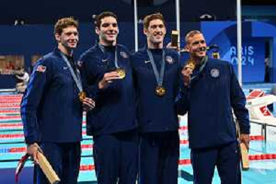 Olimpiadi Parigi 2024 - nuoto Nuoto finale 4x100m stile libero maschile nella foto Stati Uniti con la medaglia d'oro Parigi 27-07-2024 Arena Parigi La Defense foto Roberto Garavaglia/Agenzia Aldo Liverani sas