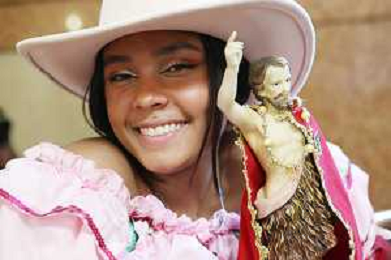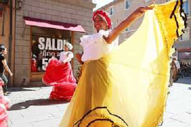IMOLA 27 07 2024 FOLCLORE SFILATA IN CENTRO DEI GRUPPI FOLCLORISTICI E UN SALUTO DI BENVENUTO DEL SINDACO DI IMOLA MARCO PANIERI DI VENEZUELA,TAIWAN E BENIN NELLA FOTO SALDI IN UN NEGOZIO GRUPPO FOLCLORISTICO DI VENEZUELA ©SANNA/AGENZIA ALDO LIVERANI SAS
