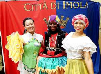 IMOLA 27 07 2024 FOLCLORE SFILATA IN CENTRO DEI GRUPPI FOLCLORISTICI E UN SALUTO DI BENVENUTO DEL SINDACO DI IMOLA MARCO PANIERI DI VENEZUELA,TAIWAN E BENIN NELLA FOTO BENIN ©SANNA/AGENZIA ALDO LIVERANI SAS
