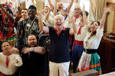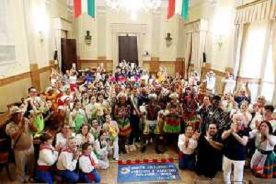 IMOLA 27 07 2024 FOLCLORE SFILATA IN CENTRO DEI GRUPPI FOLCLORISTICI E UN SALUTO DI BENVENUTO DEL SINDACO DI IMOLA MARCO PANIERI DI VENEZUELA,TAIWAN E BENIN NELLA FOTO SINDACO MARCO PANIERI CON I GRUPPI FOLCLORISTICI ©SANNA/AGENZIA ALDO LIVERANI SAS
