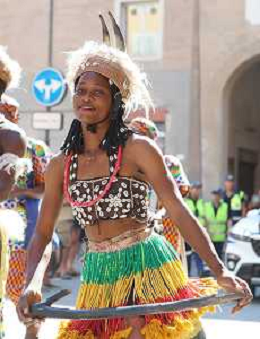 IMOLA 27 07 2024 FOLCLORE SFILATA IN CENTRO DEI GRUPPI FOLCLORISTICI E UN SALUTO DI BENVENUTO DEL SINDACO DI IMOLA MARCO PANIERI DI VENEZUELA,TAIWAN E BENIN NELLA FOTO GRUPPO FOLCLORISTICO DELLO STATO DI BENIN ©SANNA/AGENZIA ALDO LIVERANI SAS