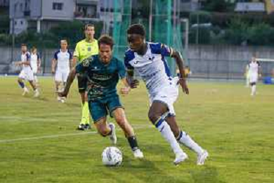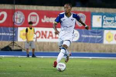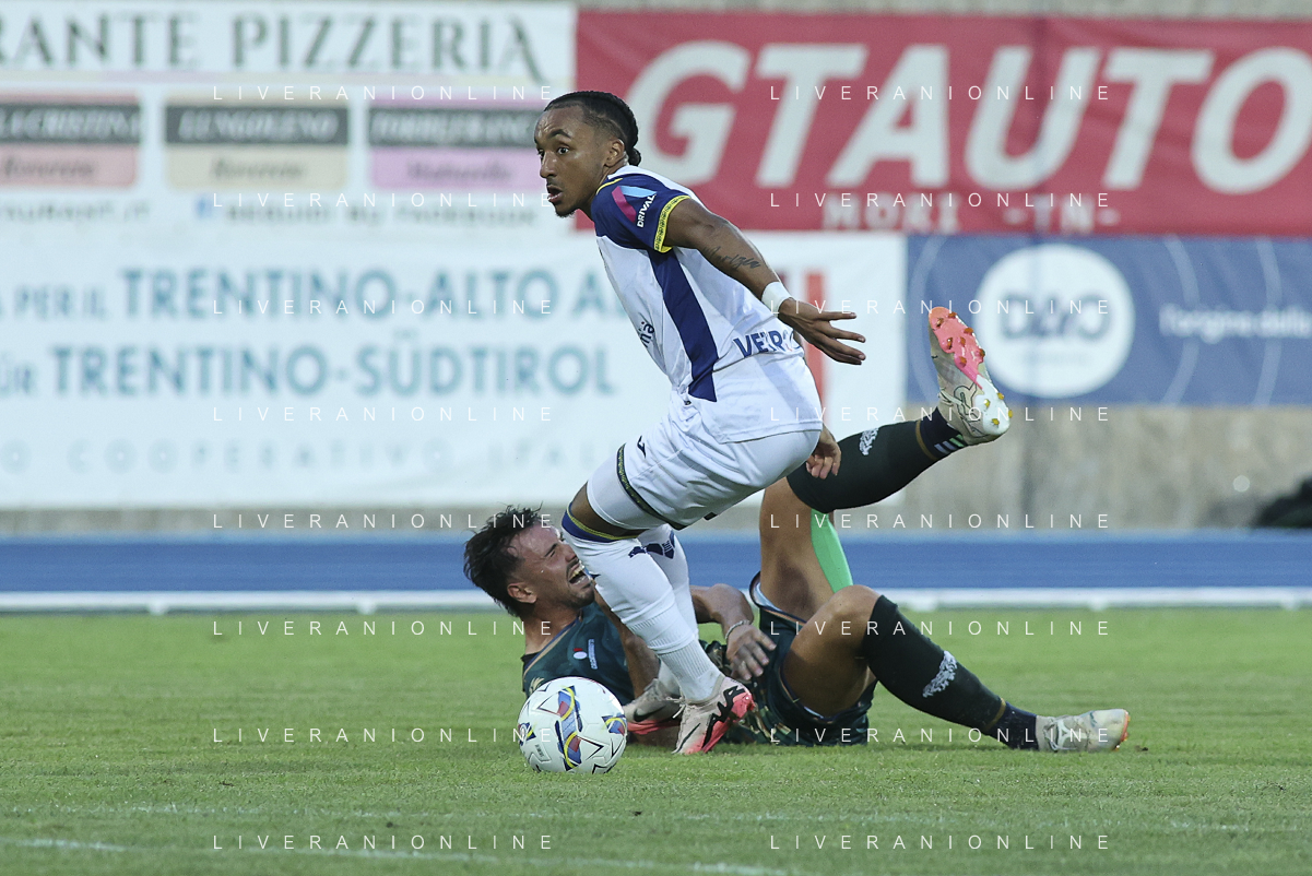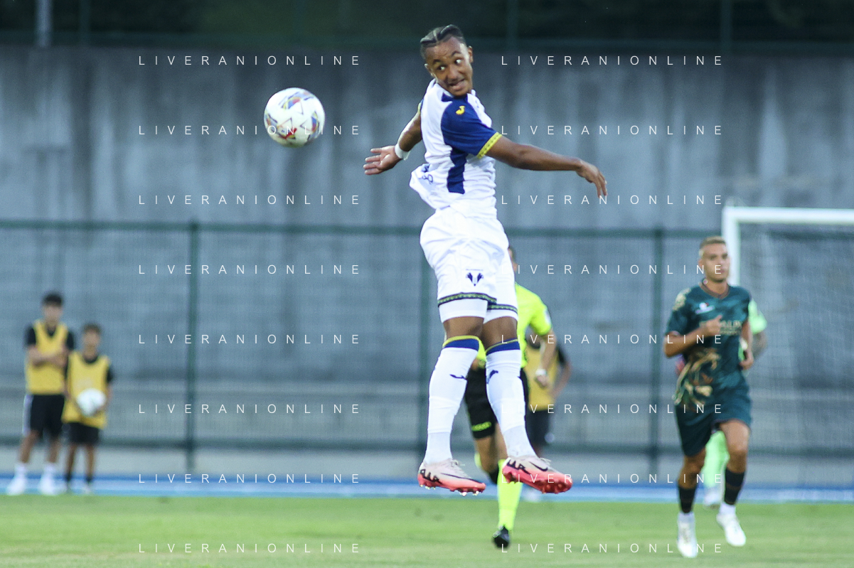 Dailon Livramento of Hellas Verona FC competes for the ball during Hellas Verona FC vs Feralpisalò FC, 4° Test Match, at stadio "Quercia" in Rovereto (TN), on July 27, 2024. (Photo by Davide Casentini)/AGENZIA ALDO LIVERANI SAS