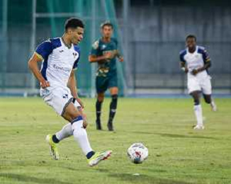 Daniel Mosquera of Hellas Verona play the ball during Hellas Verona FC vs Feralpisalò FC, 4° Test Match, at stadio "Quercia" in Rovereto (TN), on July 27, 2024. (Photo by Davide Casentini)/AGENZIA ALDO LIVERANI SAS