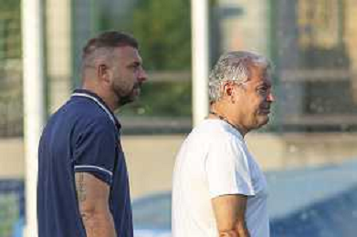 Maurizio Setti Chairman of Hellas Verona FC speaks to Sean Sogliano Sport director of Hellas Verona FC during Hellas Verona FC vs Feralpisalò FC, 4° Test Match, at stadio "Quercia" in Rovereto (TN), on July 27, 2024. (Photo by Davide Casentini)/AGENZIA ALDO LIVERANI SAS