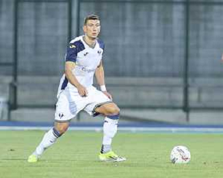 Stefan Mitrovic of Hellas Verona play the ball during Hellas Verona FC vs Feralpisalò FC, 4° Test Match, at stadio "Quercia" in Rovereto (TN), on July 27, 2024. (Photo by Davide Casentini)/AGENZIA ALDO LIVERANI SAS