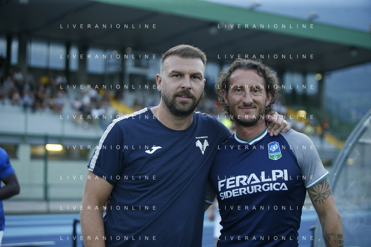Paolo Zanetti Head Coach of Hellas Verona and Aimo Diana Head Coach of Feralpisalò during Hellas Verona FC vs Feralpisalò FC, 4° Test Match, at stadio "Quercia" in Rovereto (TN), on July 27, 2024. (Photo by Davide Casentini)/AGENZIA ALDO LIVERANI SAS