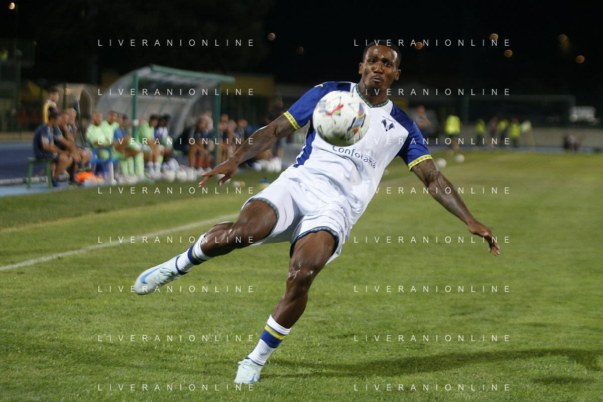 Jackson Tchatchoua of Hellas Verona play the ball during Hellas Verona FC vs Feralpisalò FC, 4° Test Match, at stadio "Quercia" in Rovereto (TN), on July 27, 2024. (Photo by Davide Casentini)/AGENZIA ALDO LIVERANI SAS