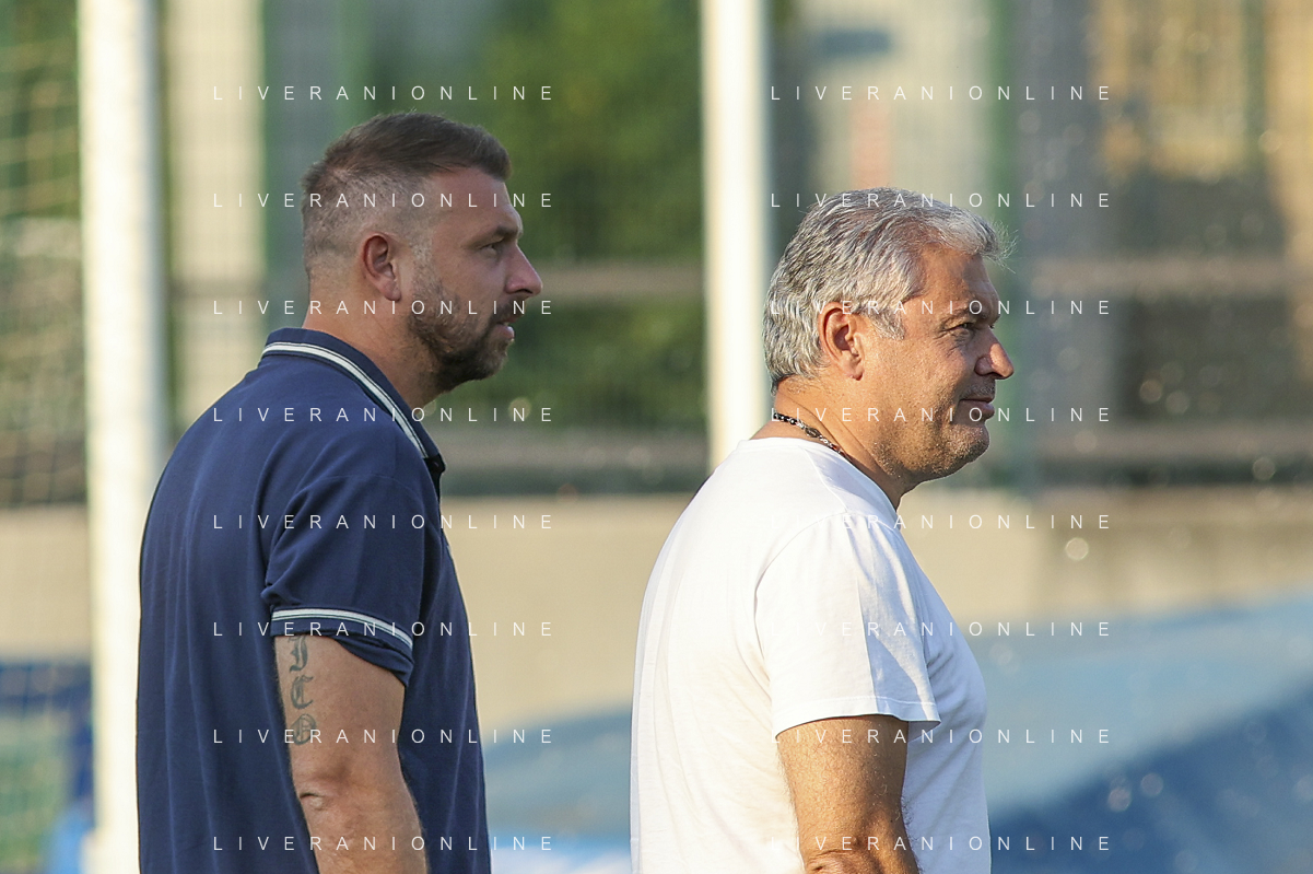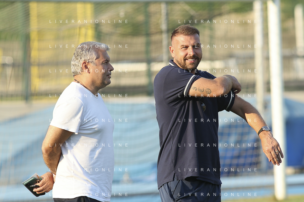 Paolo Zanetti Head Coach of Hellas Verona speaks to Sean Sogliano Sport director of Hellas Verona FC during Hellas Verona FC vs Feralpisalò FC, 4° Test Match, at stadio "Quercia" in Rovereto (TN), on July 27, 2024. (Photo by Davide Casentini)/AGENZIA ALDO LIVERANI SAS