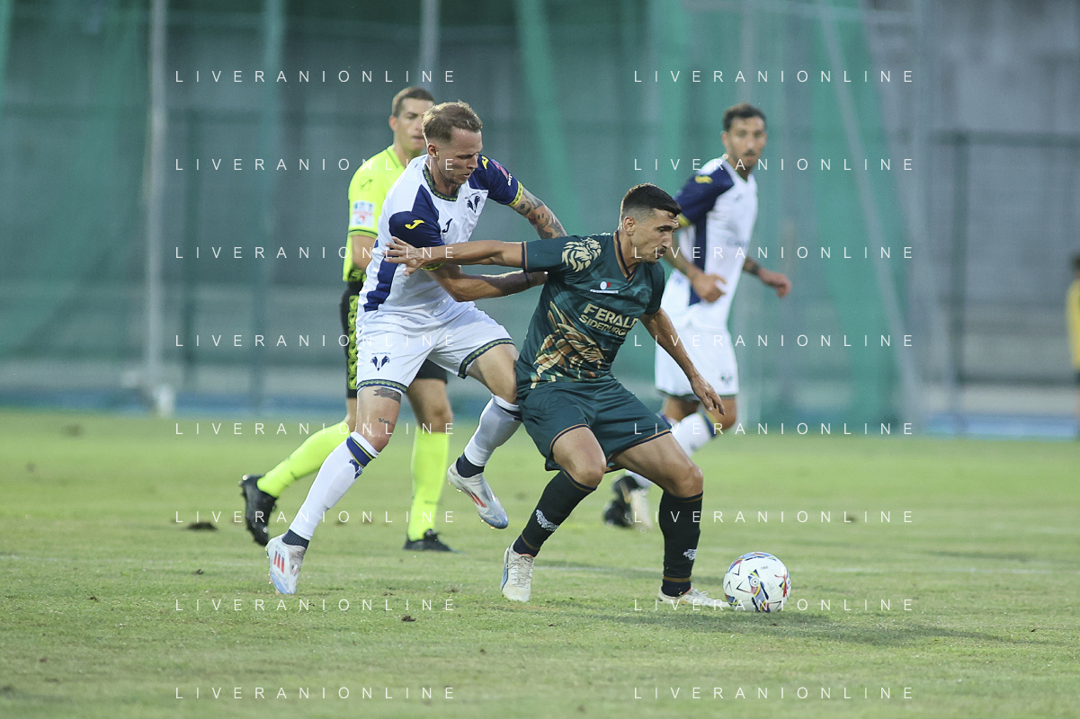 Federico Ceccerini of Hellas Verona play the ball during Hellas Verona FC vs Feralpisalò FC, 4° Test Match, at stadio "Quercia" in Rovereto (TN), on July 27, 2024. (Photo by Davide Casentini)/AGENZIA ALDO LIVERANI SAS