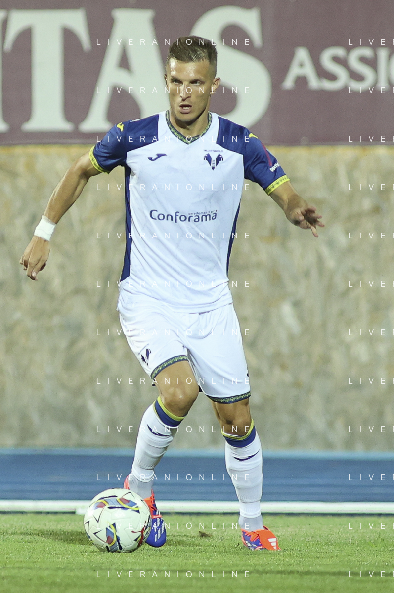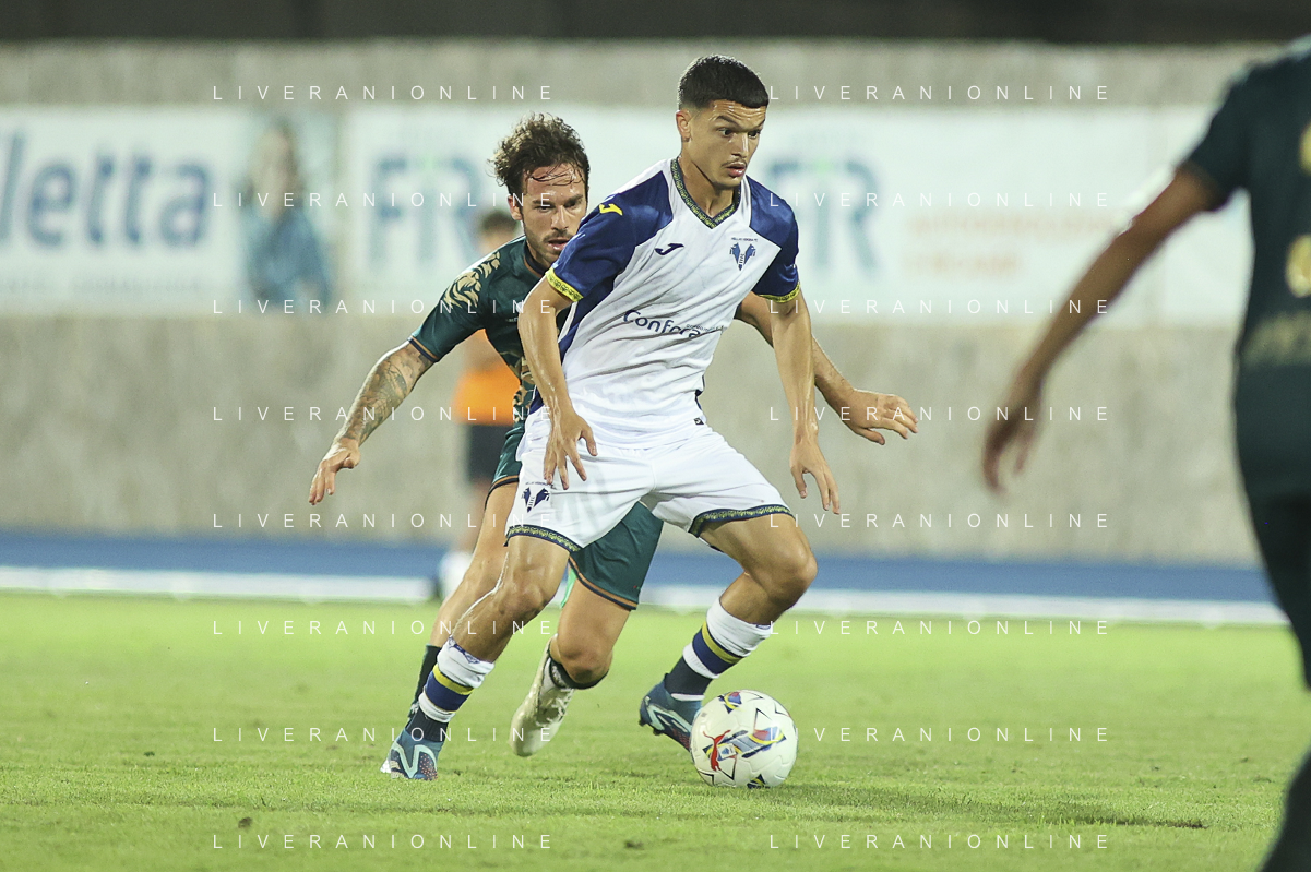 Simone Perilli of Hellas Verona during Hellas Verona FC vs Feralpisalò FC, 4° Test Match, at stadio "Quercia" in Rovereto (TN), on July 27, 2024. (Photo by Davide Casentini)/AGENZIA ALDO LIVERANI SAS
