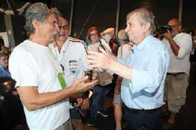 IMOLA 30 07 2024 AUTODROMO ENZO E DINO FERRARI DOTT.CLAUDIO COSTA E CARLO COSTA IL GIORNO DELLA VITA "VITE SALVATE" NELLA FOTO PAOLO SIMONCELLI PADRE DI MARCO E DOTT.CLAUDIO COSTA ©SANNA/ Agenzia ALDO LIVERANI SAS