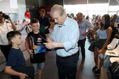 IMOLA 30 07 2024 AUTODROMO ENZO E DINO FERRARI DOTT.CLAUDIO COSTA E CARLO COSTA IL GIORNO DELLA VITA "VITE SALVATE" NELLA FOTO DOTT CLAUDIO COSTA FIRMA AUTOGRAFI AI GIOVANI ©SANNA/ Agenzia ALDO LIVERANI SAS