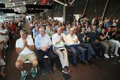 IMOLA 30 07 2024 AUTODROMO ENZO E DINO FERRARI DOTT.CLAUDIO COSTA E CARLO COSTA IL GIORNO DELLA VITA "VITE SALVATE" NELLA FOTO DA SINISTRA DOTT GIANCARLO SALVI,GIAN CARLO MINARDI DOTT CLAUDIO COSTA,GIOVANI COPIOLI PRESIDENTE FMI,SINDACO MARCO PANIERI E CARLO COSTA CON IL PUBBLICO ©SANNA/ Agenzia ALDO LIVERANI SAS