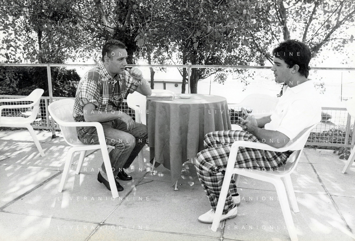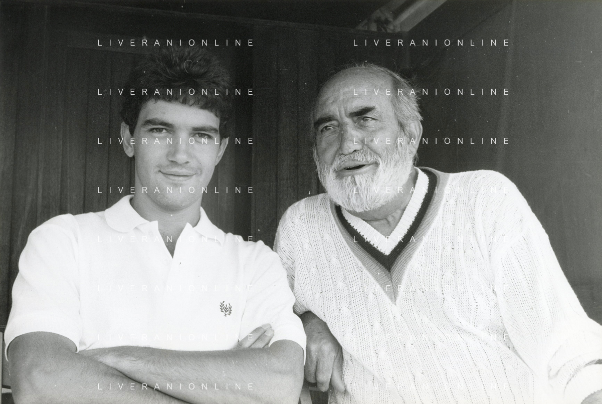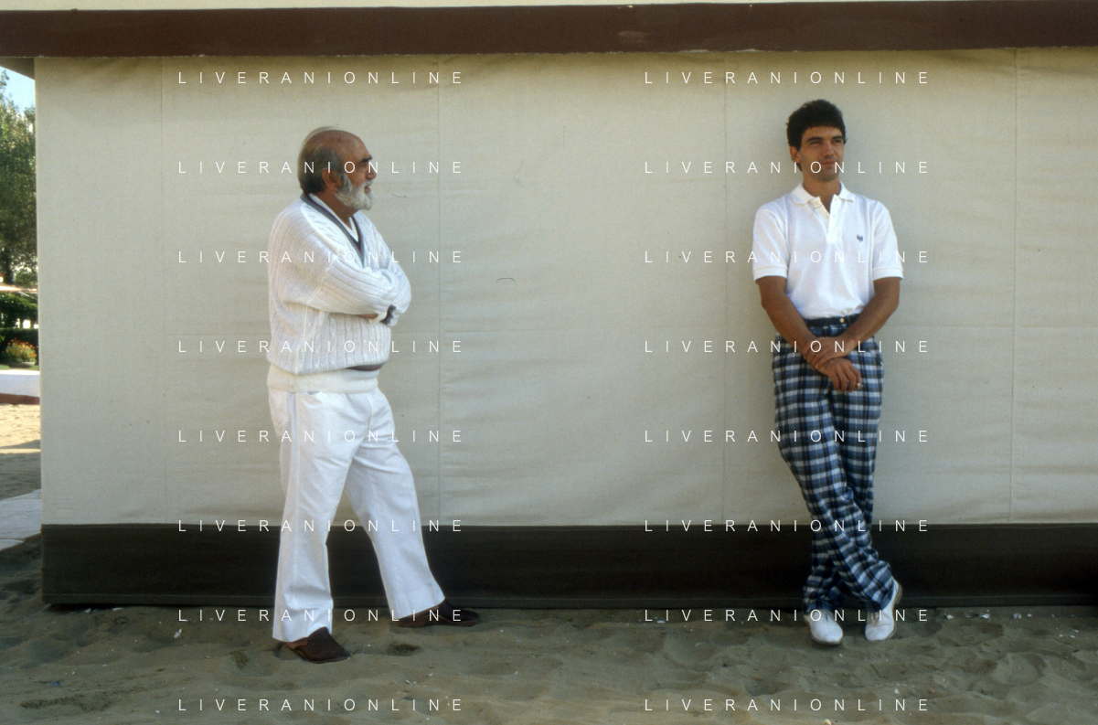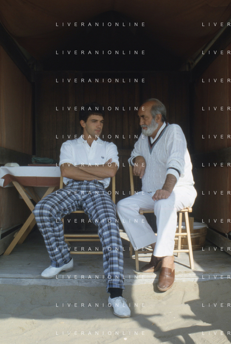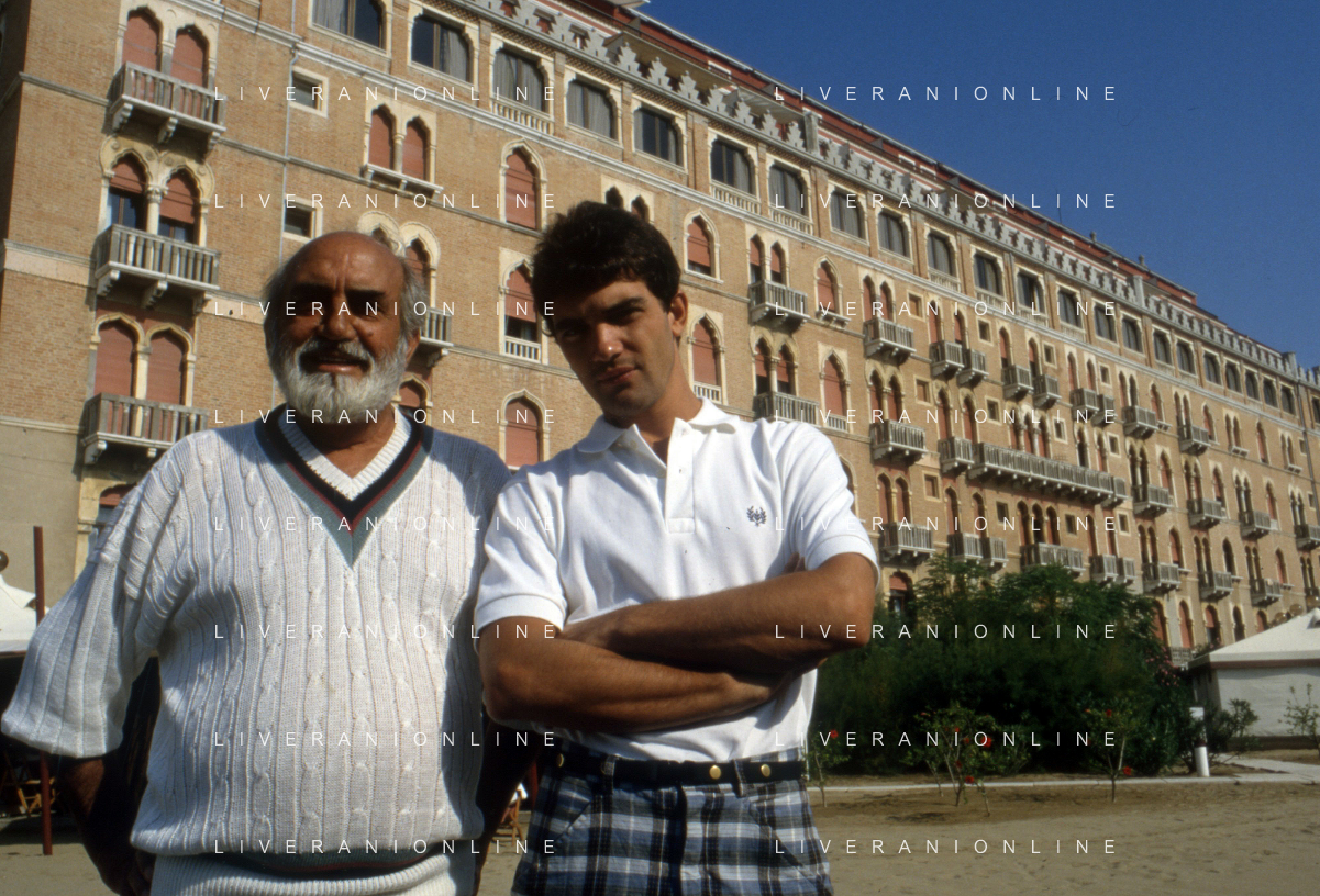 DIAP-RETROSPETTIVA ANTONIO BANDERAS ATTORE NELLA FOTO ANTONIO BANDERAS CON ANTONIO FERRANDIS A VENEZIA NELL'ANNO 1985 FOTO RENATO LANI-AG ALDO LIVERANI SAS
