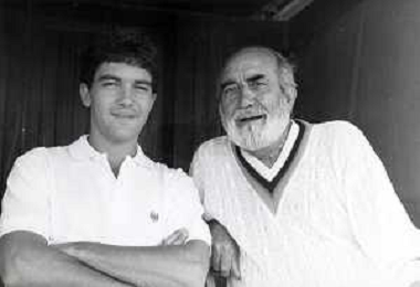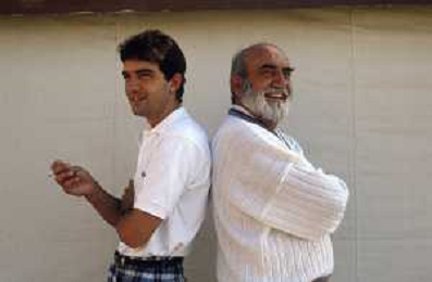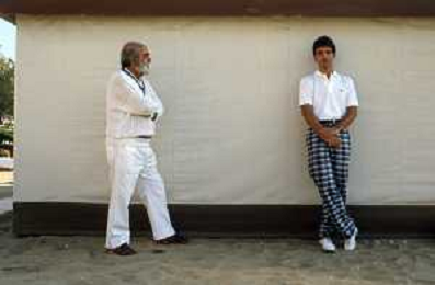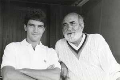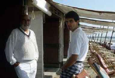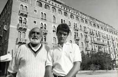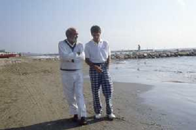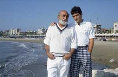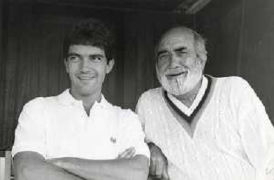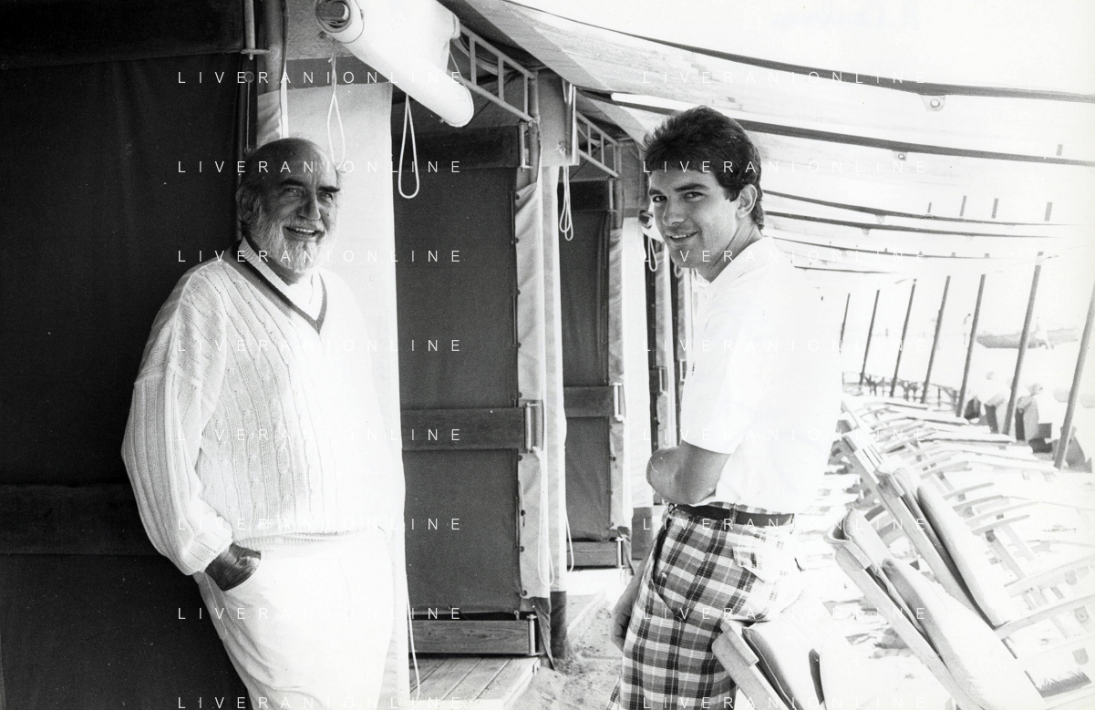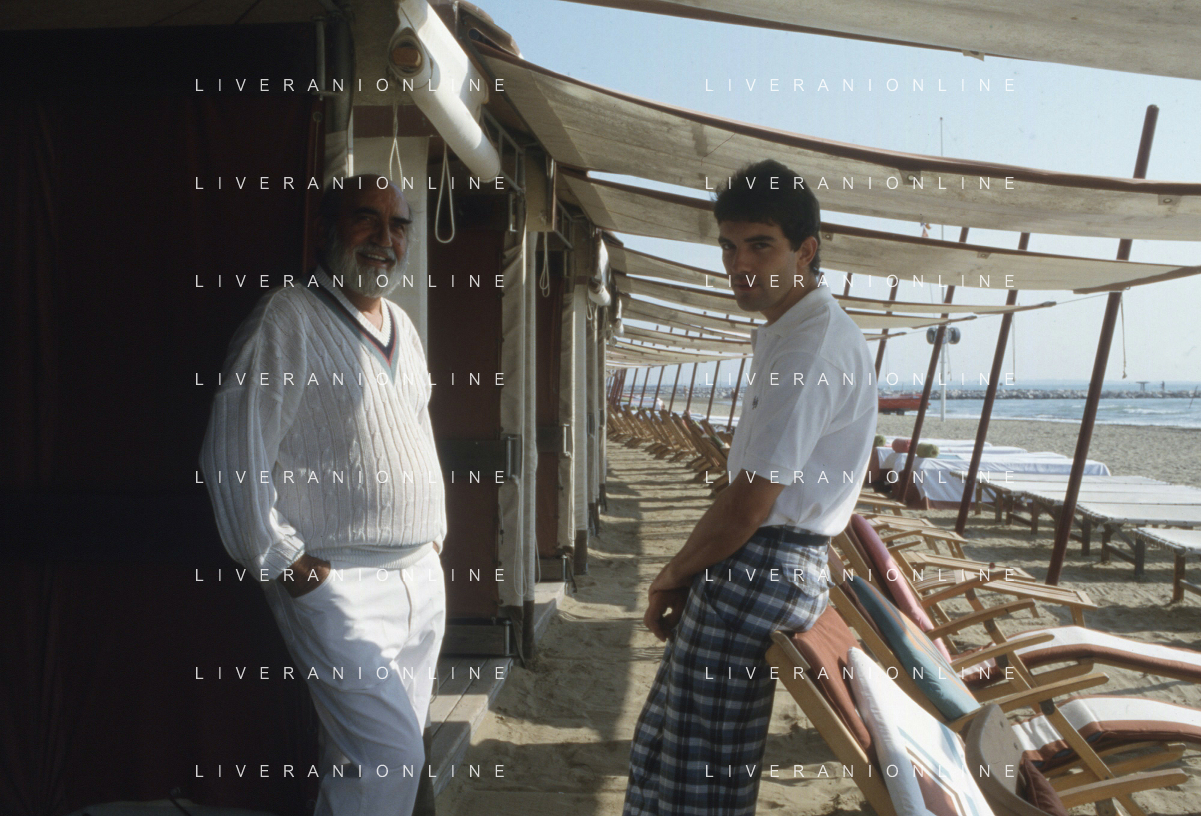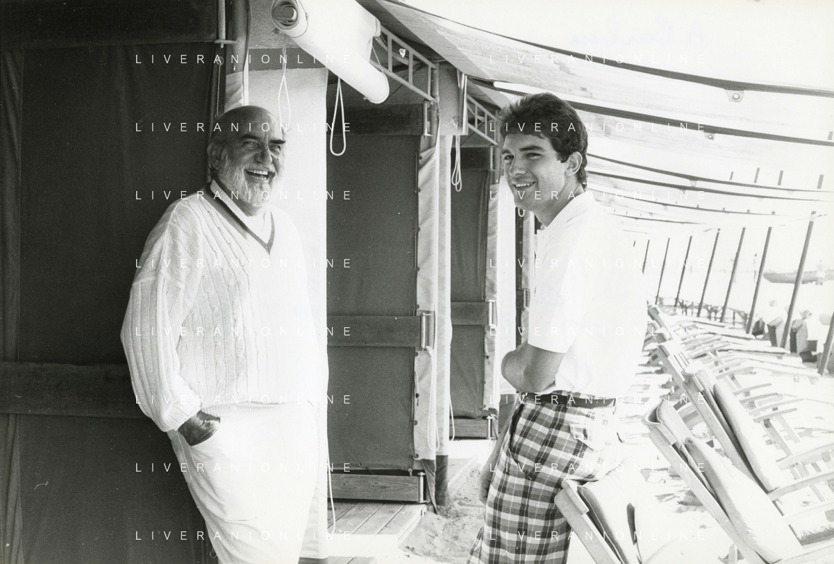 DIAP-RETROSPETTIVA ANTONIO BANDERAS ATTORE NELLA FOTO ANTONIO BANDERAS CON ANTONIO FERRANDIS A VENEZIA NELL'ANNO 1985 FOTO RENATO LANI-AG ALDO LIVERANI SAS