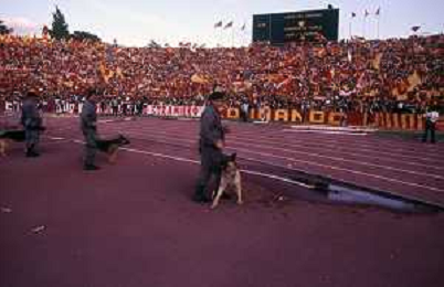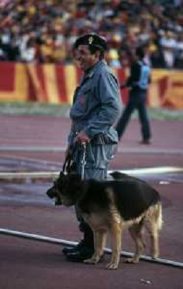 DIAP-1983 ROMA-TIFOSI ROMA DURANTE LA FINALE DI COPPA CAMPIONI ROMA-LIVERPOOL NELLA FOTO LA POLIZIA CON IL CANE AG ALDO LIVERANI SAS