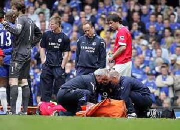 CHELSEA - MANCHESTER UNITED PREMIERSHIP @stamford bridge london UK 29/04/2006 nella foto Wayne Rooney a terra infortunato viene soccorso dai medici Picture by Marcello Pozzetti ©IPS Photo Agency/Ag. aldo liverani