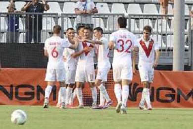 Gabriele Moncini of Brescia Calcio FC and Brescia players jubilates after scoring the goal during Brescia Calcio FC vs Genoa CFC, Test Match pre season Serie A Enilive 2024-25, at Mario Rigamonti stadium in Brescia (BS), Italy, on July 20, 2024. (Photo by Davide Casentini)/AGENZIA ALDO LIVERANI SAS