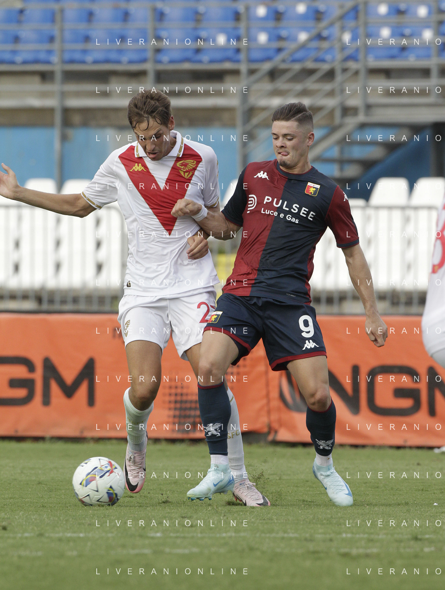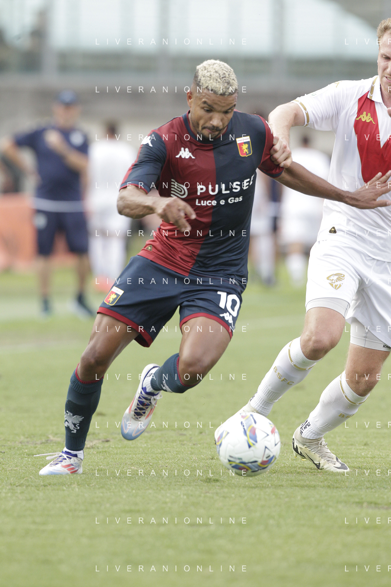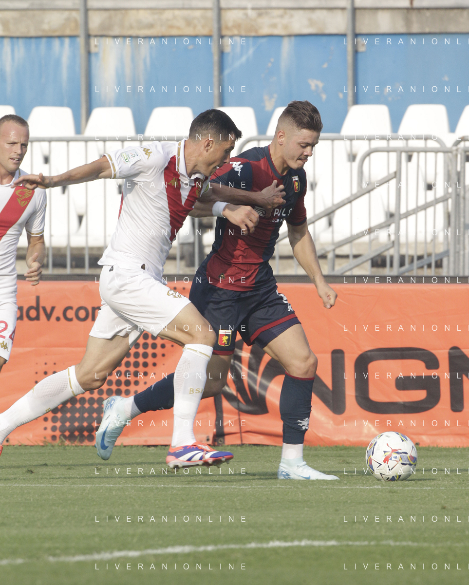 Stefano Sabelli of Genoa CFC battle for the ball with Alexander Jallow of Brescia Calcio FC during Brescia Calcio FC vs Genoa CFC, Test Match pre season Serie A Enilive 2024-25, at Mario Rigamonti stadium in Brescia (BS), Italy, on July 20, 2024. (Photo by Davide Casentini)/AGENZIA ALDO LIVERANI SAS