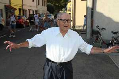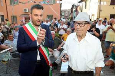 IMOLA (SAN PROSPERO) 31 07 2024 PIETRO TOZZI HA FESTEGGIATO 100 ANNI, UNA FESTA DI COMUNITAí PER TUTTA LA FRAZIONE DI SAN PROSPERO PRESENTE IL SINDACO DI IMOLA MARCO PANIERI NELLA FOTO PIETRO TOZZI ©SANNA/AGENZIA ALDO LIVERANI SAS