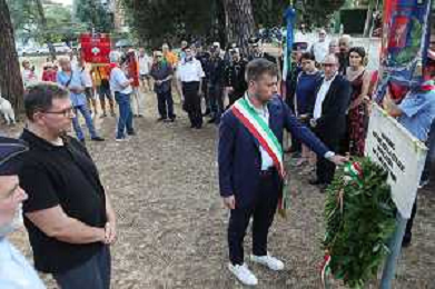 IMOLA 02 08 2024 Cerimonia di Commemorazione vittime della strage alla Stazione di Bologna del 2 agosto 1980 NELLA FOTO COL.FRANCO CAMAGGI DEPOSIZIONE DELLA CORONA PRESENTI SINDACO MARCO PANIERI E MONS.ANDREA QUERZE' ©SANNA/AGENZIA ALDO LIVERANI SAS