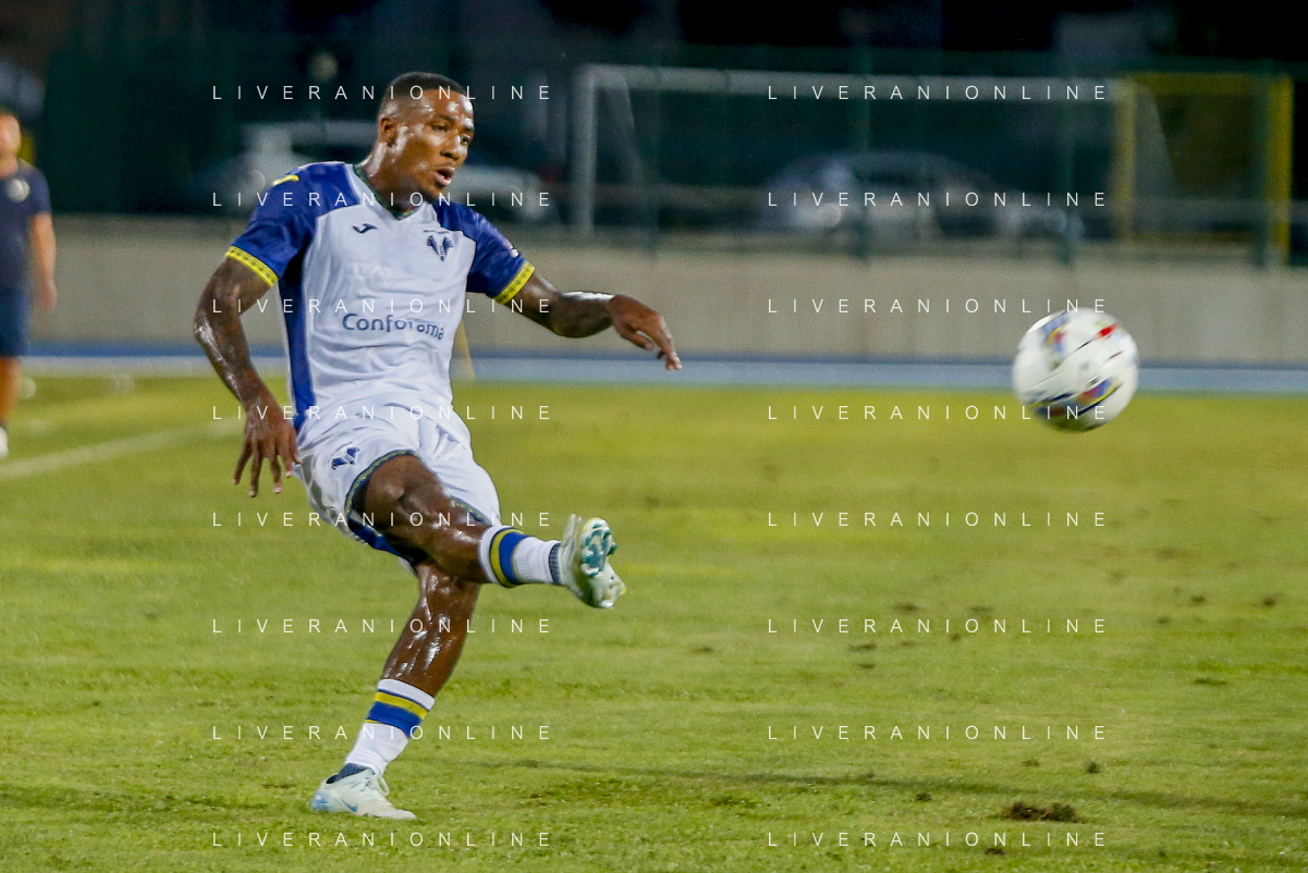 Dailon Livramento of Hellas Verona FC FC kick the ball during Hellas Verona FC vs Asteras Tripolis FC, 5° Test Match, at stadio "Quercia" in Rovereto (TN), on August 03, 2024. (Photo by Davide Casentini)/AGENZIA ALDO LIVERANI SAS