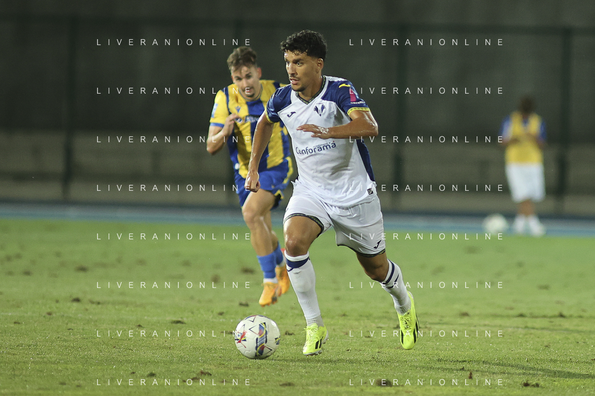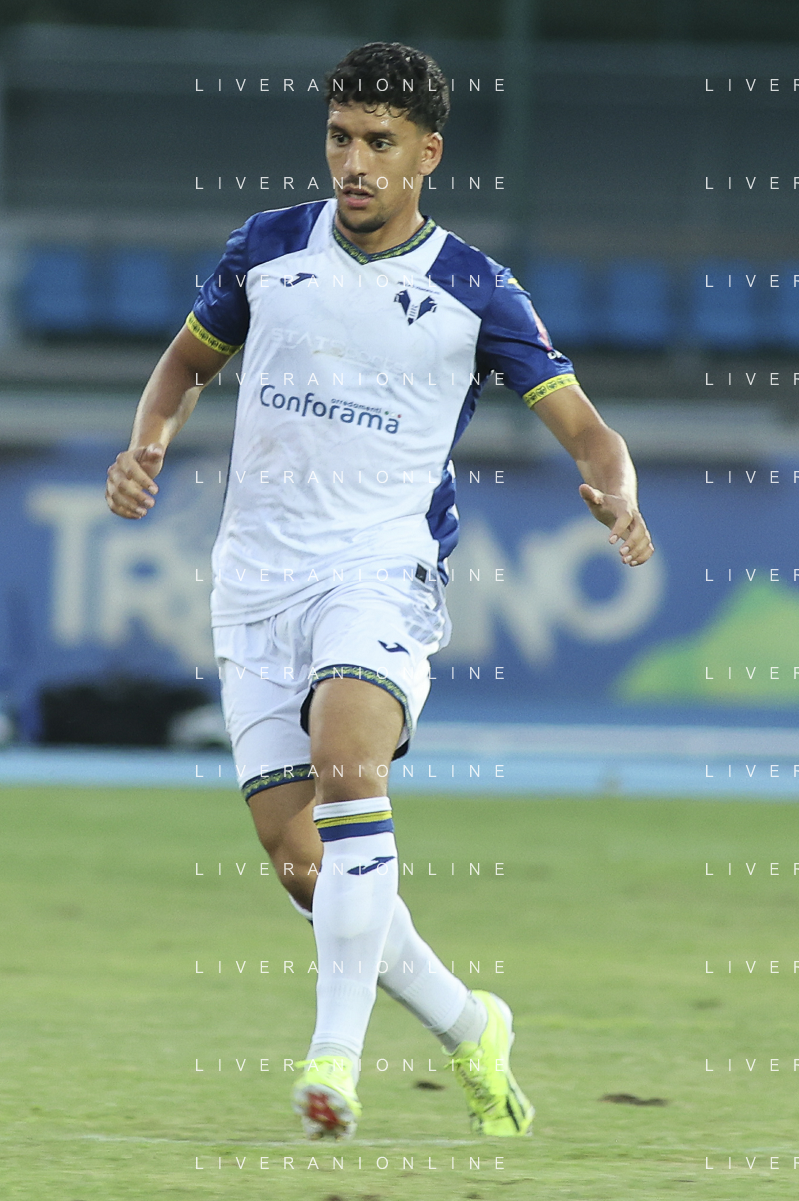 Reda Belahyane of Hellas Verona FC play the ball during Hellas Verona FC vs Asteras Tripolis FC, 5° Test Match, at stadio "Quercia" in Rovereto (TN), on August 03, 2024. (Photo by Davide Casentini)/AGENZIA ALDO LIVERANI SAS