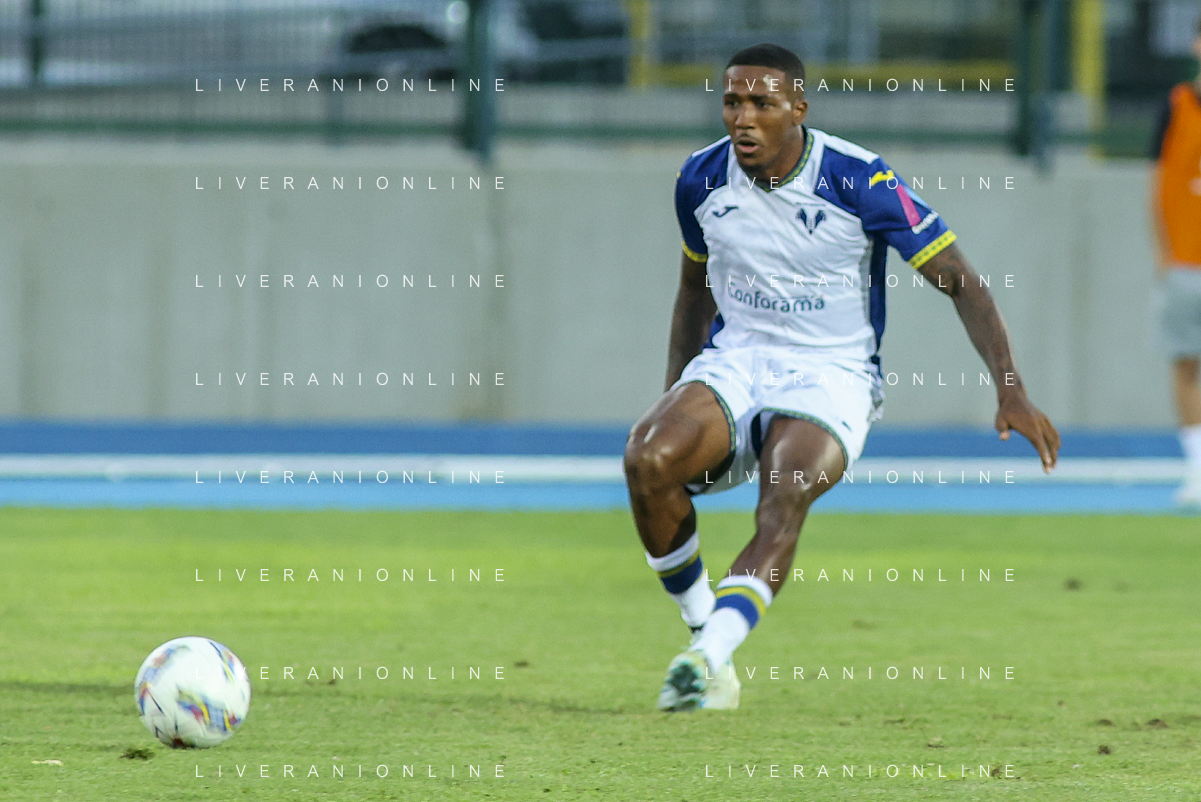 Dailon Livramento of Hellas Verona FC FC play the ball during Hellas Verona FC vs Asteras Tripolis FC, 5° Test Match, at stadio "Quercia" in Rovereto (TN), on August 03, 2024. (Photo by Davide Casentini)/AGENZIA ALDO LIVERANI SAS